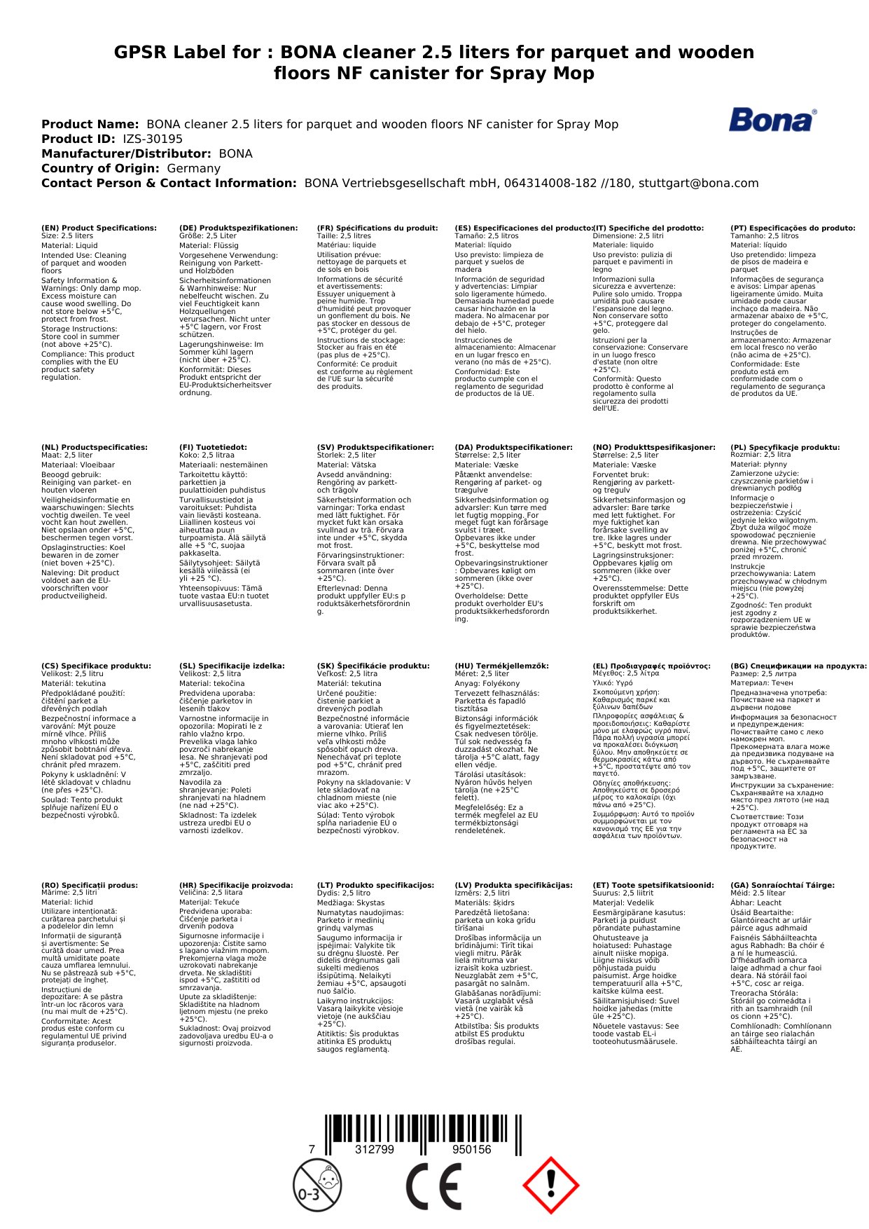BONA Reiniger 2,5 Liter für Parkett- & Holzboden NF-Kanister f. Spray Mopp