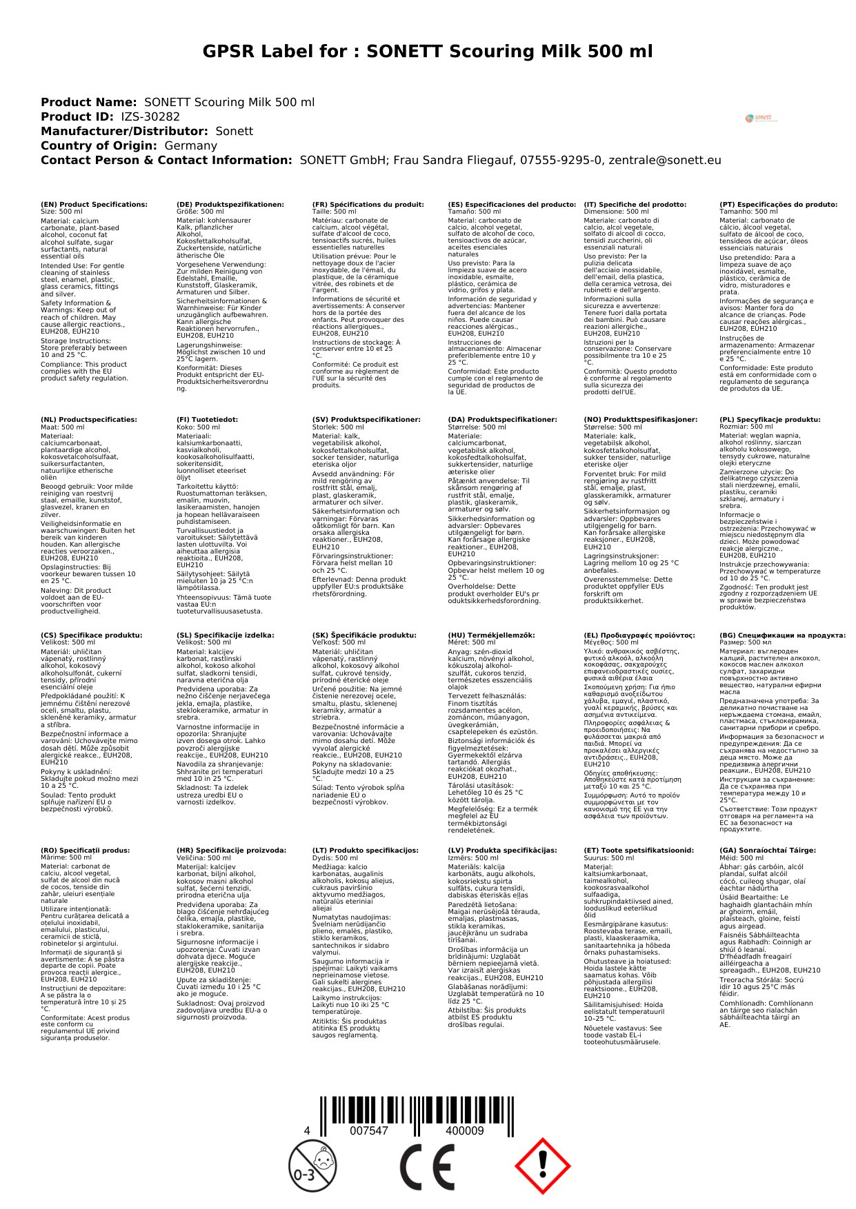 Stellen Sie eine Frage, um mehr über das Produkt zu erfahrenSonett Scheuermilch 500 ml für Edelstahl