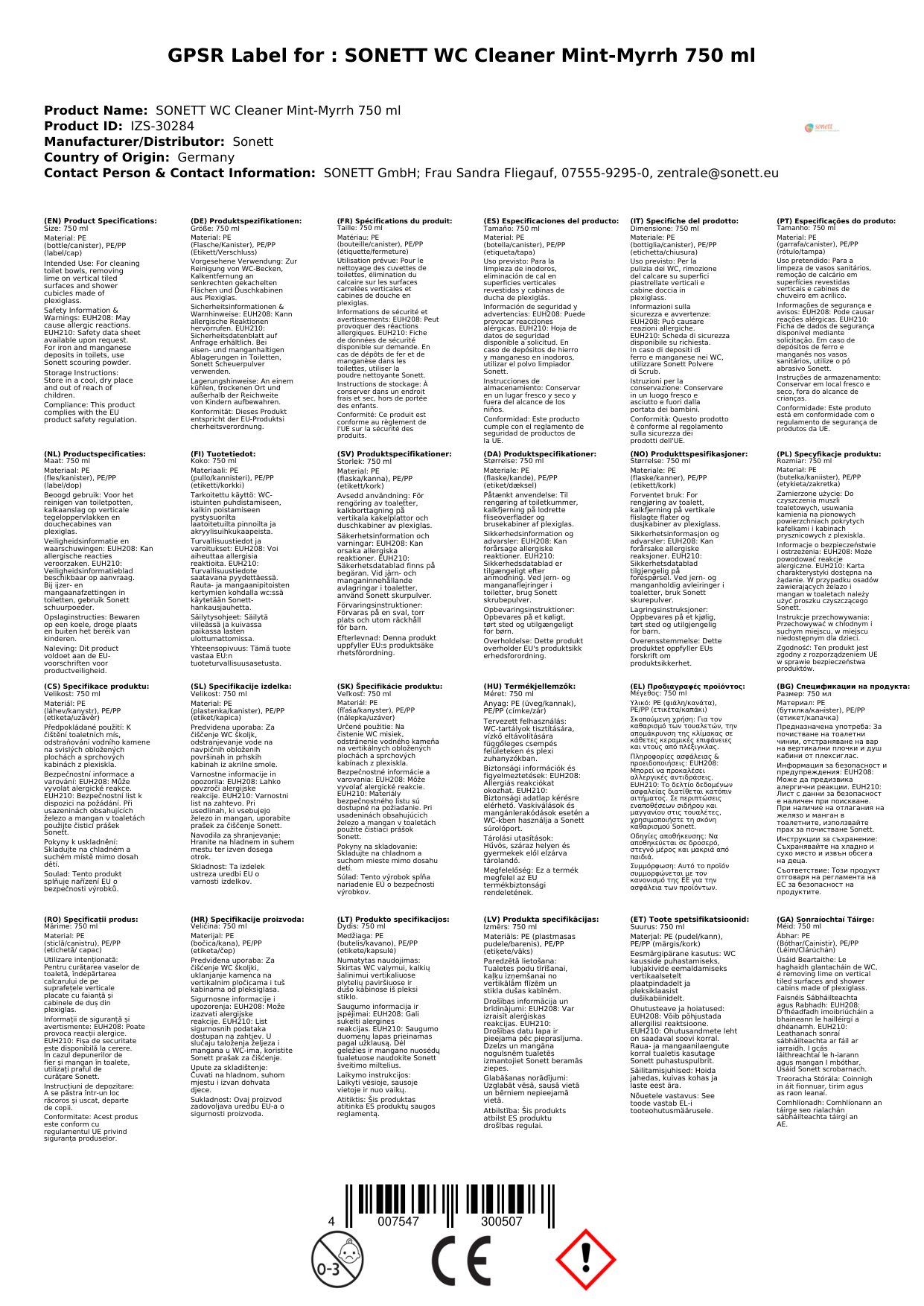 Stellen Sie eine Frage, um mehr über das Produkt zu erfahrenSONETT WC Reiniger 750 ml Minze-Myrthe