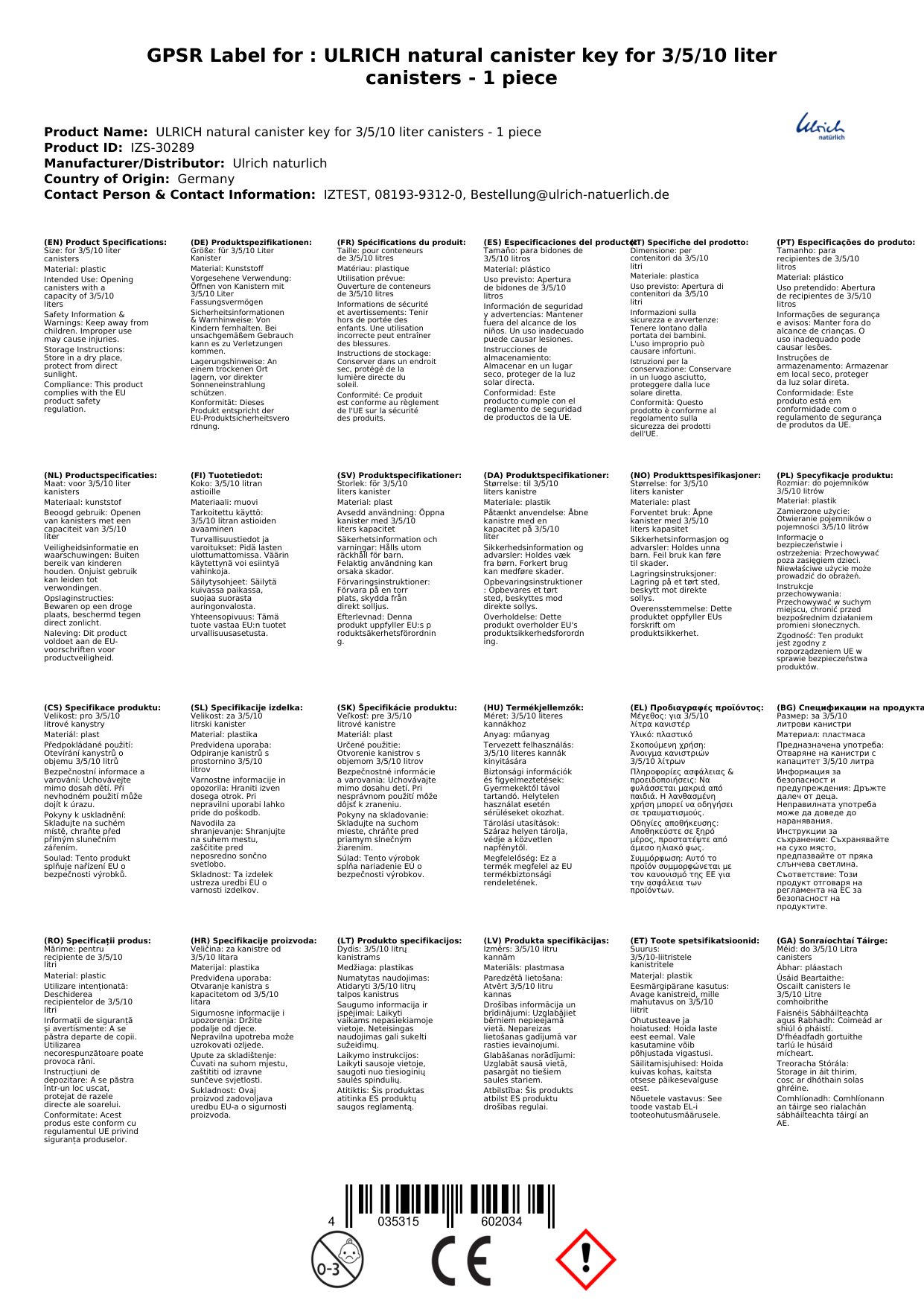 ULRICH natürlich Kanisterschlüssel für 3/5/10 Liter Kanister - 1 Stück