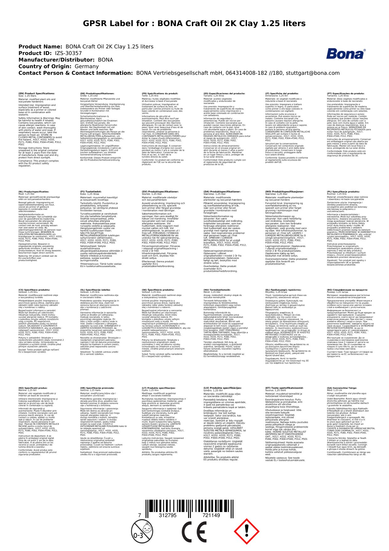 WARNUNG: Bona CRAFT OIL 2 K OIL ENTHÄLT TROCKNENDE