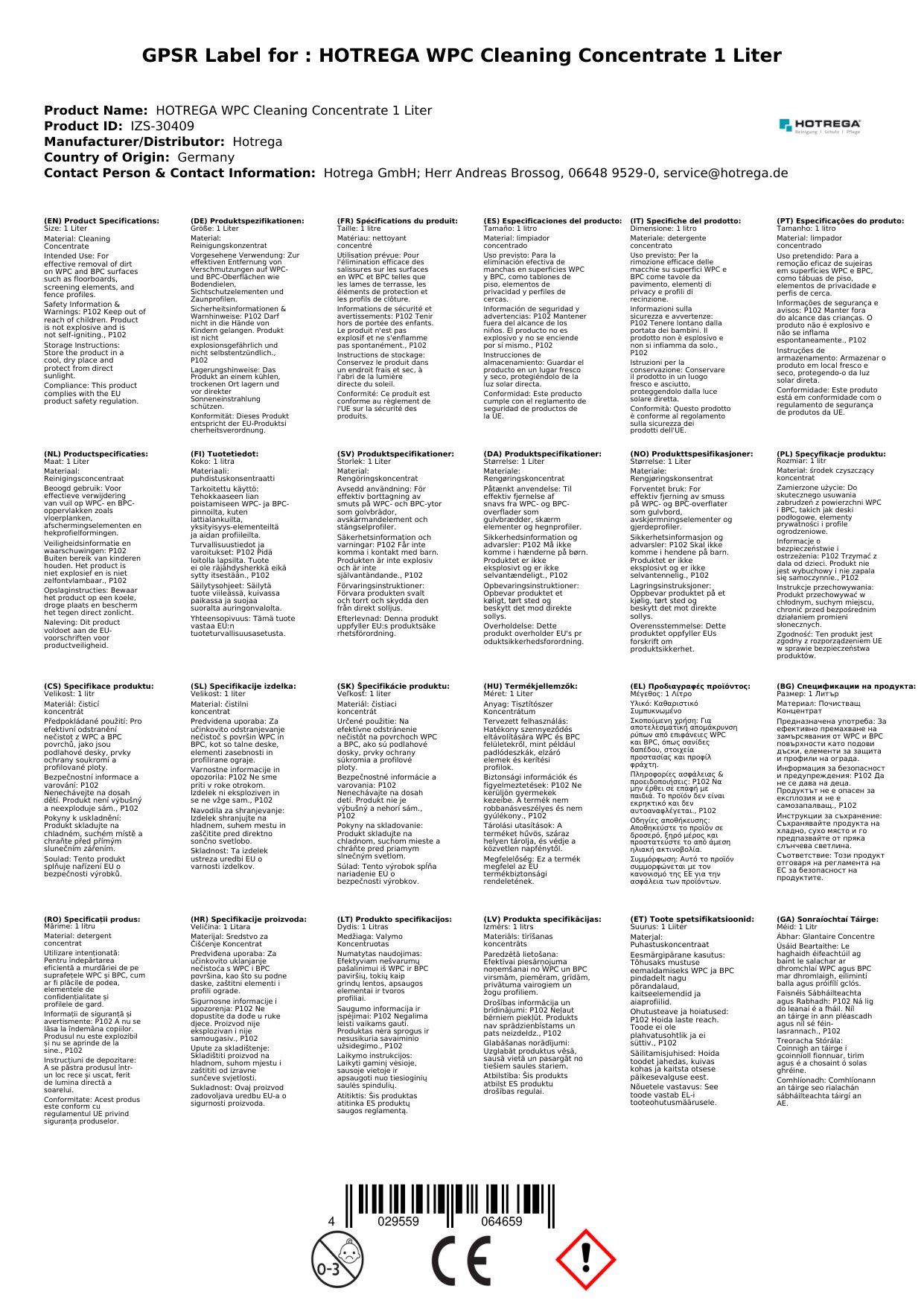 Stellen Sie eine Frage, um mehr über das Produkt zu erfahrenHotrega WPC-Reiniger Konzentrat 1 Liter