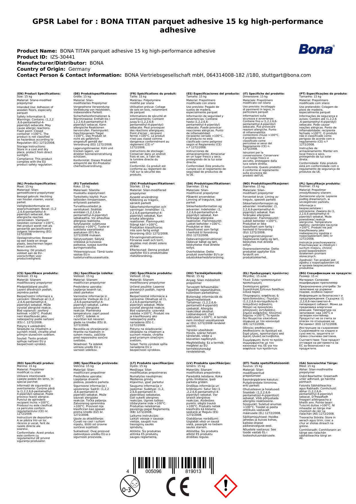 Stellen Sie eine Frage, um mehr über das Produkt zu erfahrenBona Titan Parkettklebstoff 15 kg Hochleistungsklebstoff