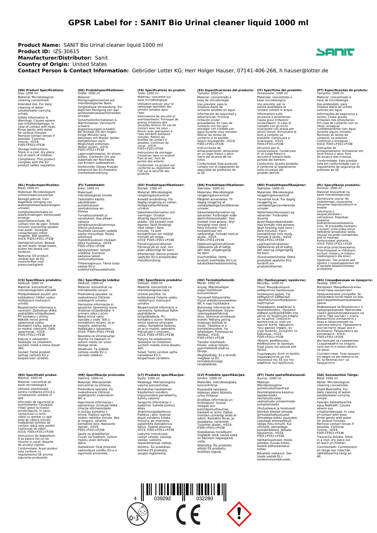 Stellen Sie eine Frage, um mehr über das Produkt zu erfahrenSANIT Bio UrinalReiniger flüssig 1000 ml