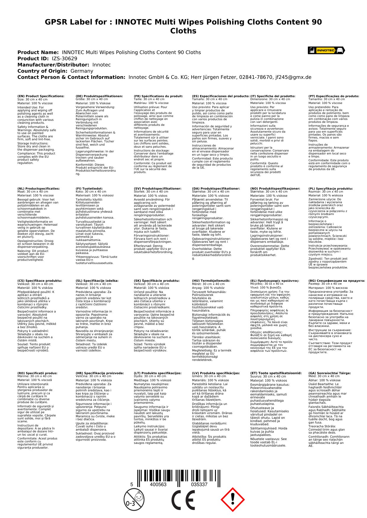 INNOTEC Multi Wipes Poliertücher Inhalt 90 Tücher