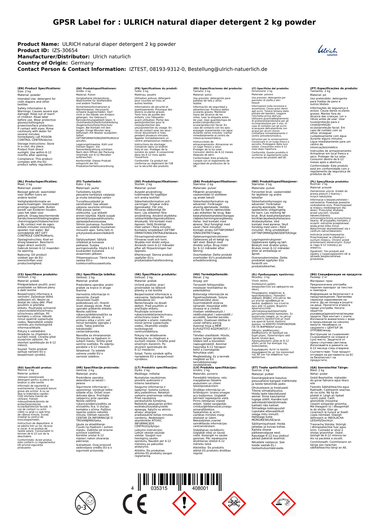 ULRICH natürlich Windelwaschmittel 2 kg Pulver