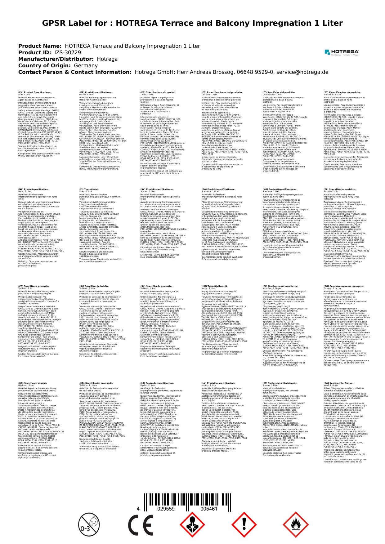 HOTREGA Terrassen- und Balkon Imprägnierung 1 Liter