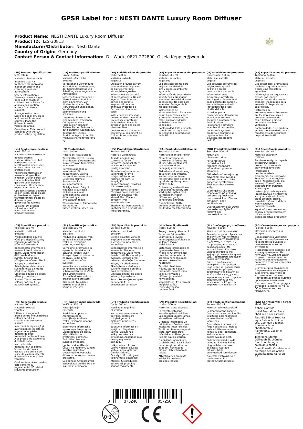 Nesti Dante Raumdüfte enthalten ausschließlich pflanzliche Extrakte, die aus biologischem Anbau gewonnen werden, werden nicht an Tieren getestet und sind unbedenklich für die Gesundheit. Der Luxury Room Diffuser, der eine edle, dekorative Form hat, wird mit Bambusstäbchen geliefert, die Sie in den geöffneten Flakon stecken. Über die Stäbchen wird der erfrischende Duft nach und nach an den ganzen Raum abgegeben - je größer der zu beduftende Bereich ist, desto mehr Stäbchen sollten Sie verwenden.