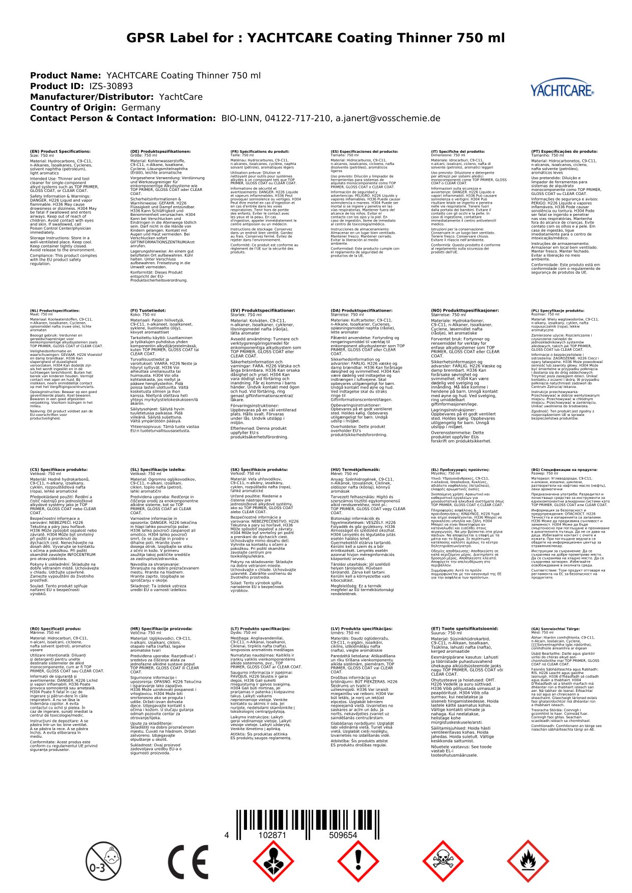 Stellen Sie eine Frage, um mehr über das Produkt zu erfahrenYC Yachtcare Coating Thinner (Verdünnung) 750 ml
