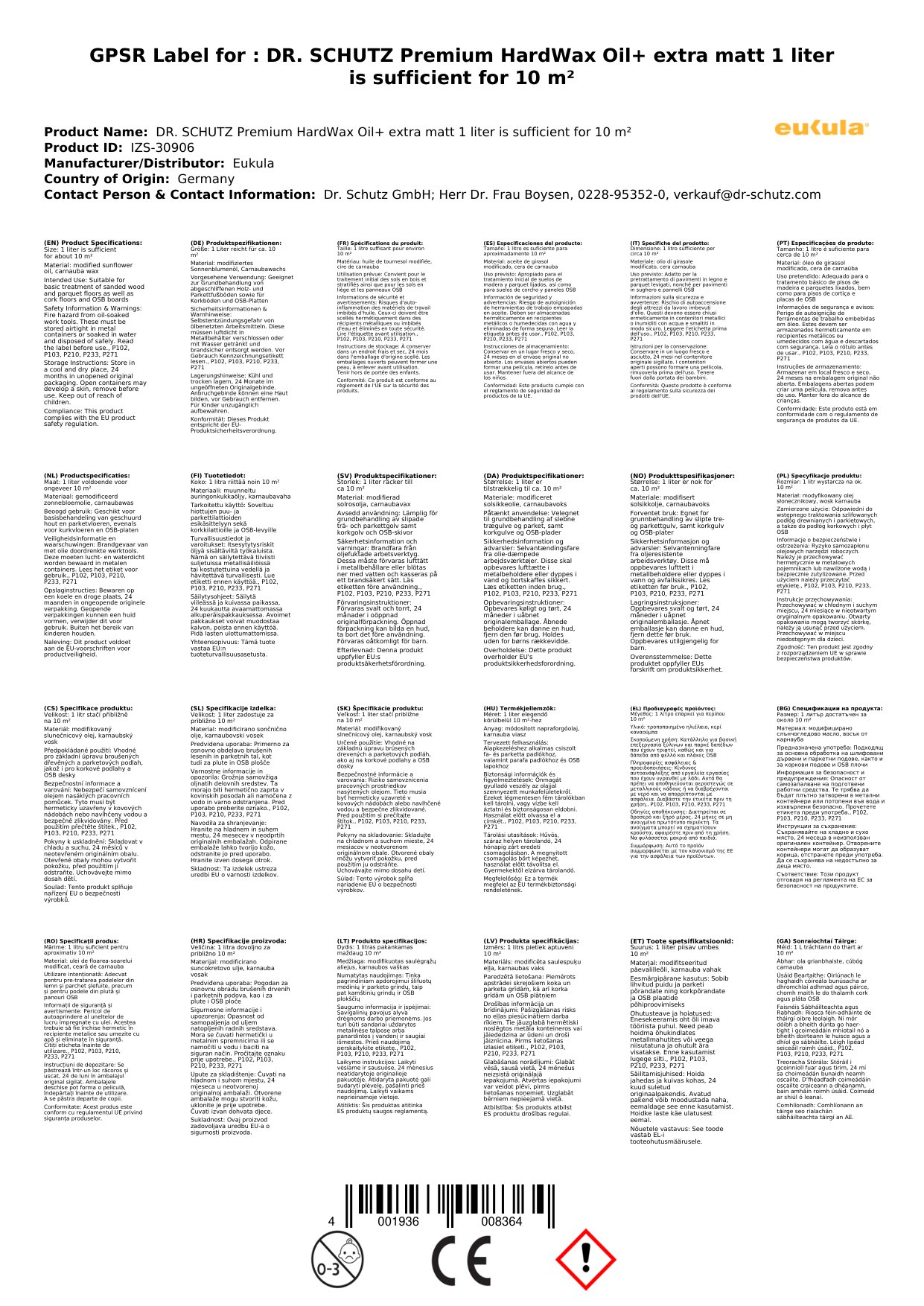Stellen Sie eine Frage, um mehr über das Produkt zu erfahrenDr. Schutz Premium HardWax Oil* 1 Liter extramatt reicht für ca. 10 m²