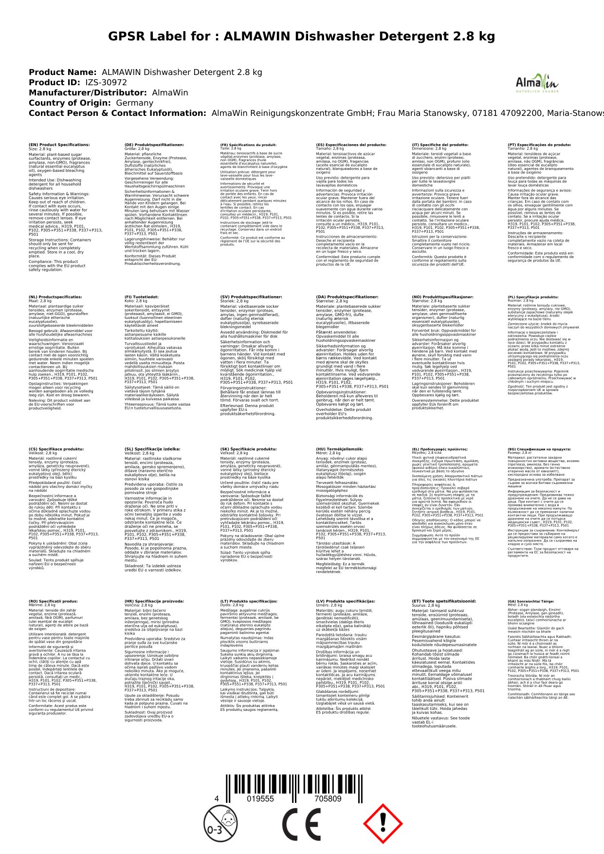 Stellen Sie eine Frage, um mehr über das Produkt zu erfahrenAlmawin Maschinenspülmittel 2,8 kg