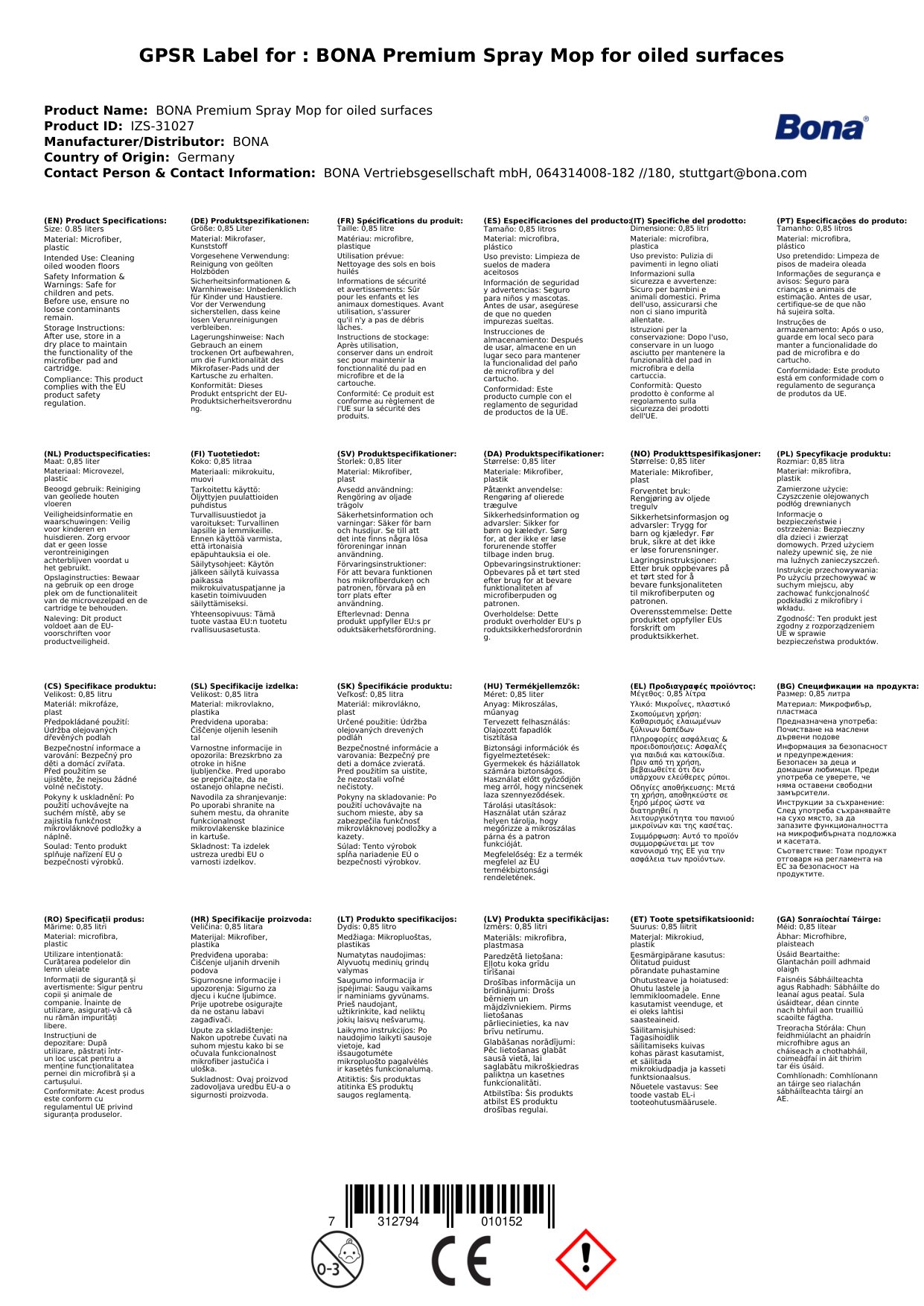 | Brand | BONA |