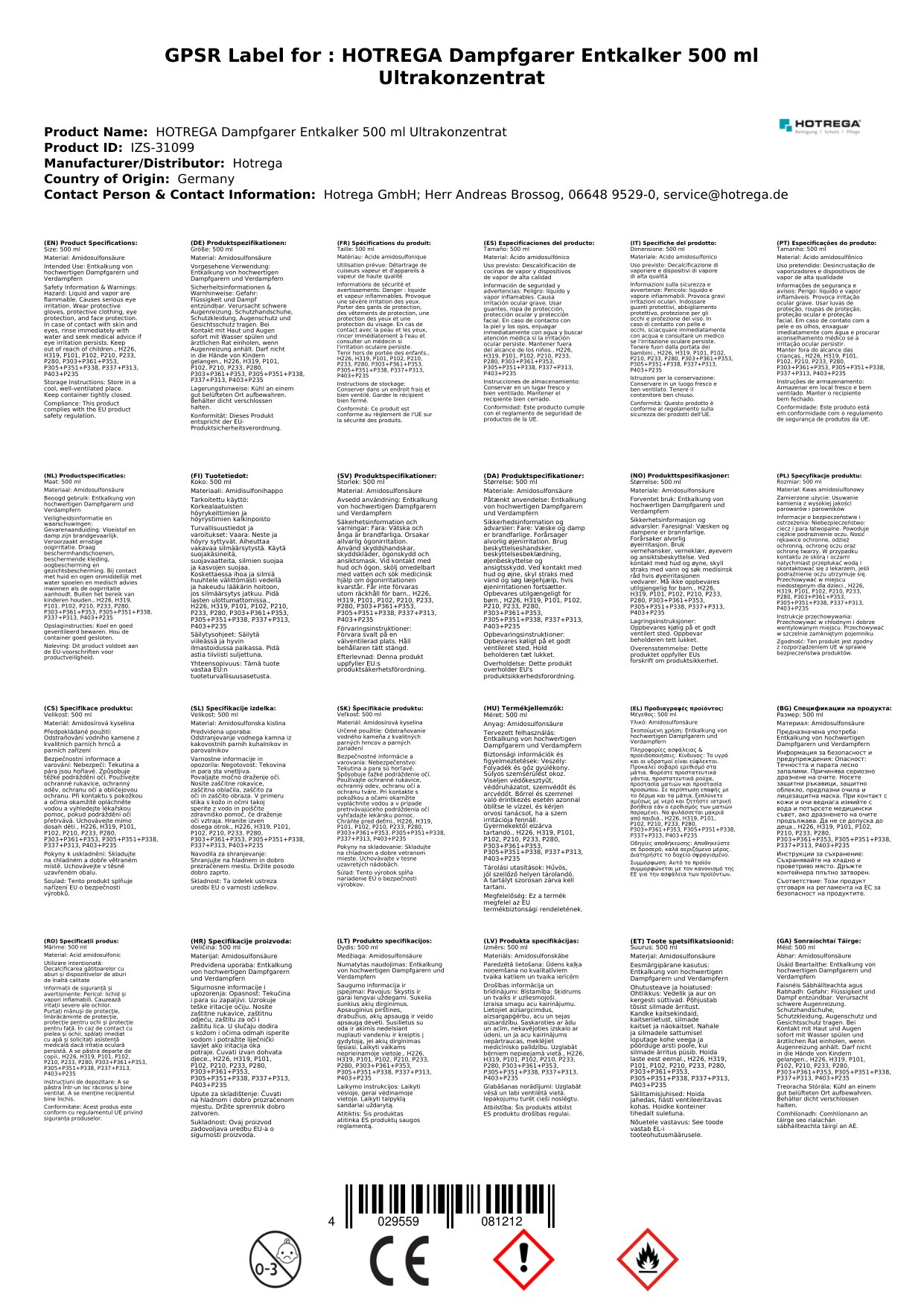 Stellen Sie eine Frage, um mehr über das Produkt zu erfahrenHotrega Dampfgarer Entkalker 500 ml Ultrakonzentrat