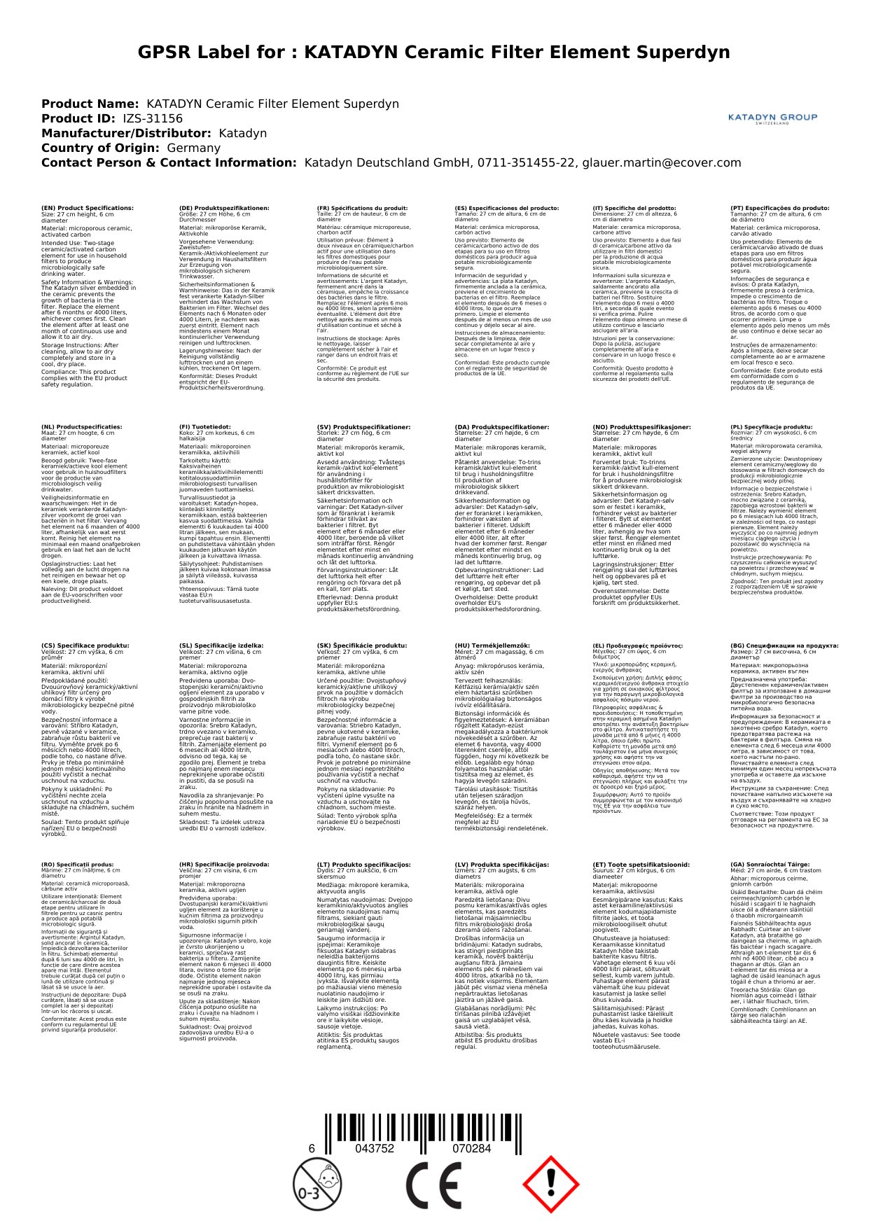 KATADYN Keramik Filterelement Superdyn