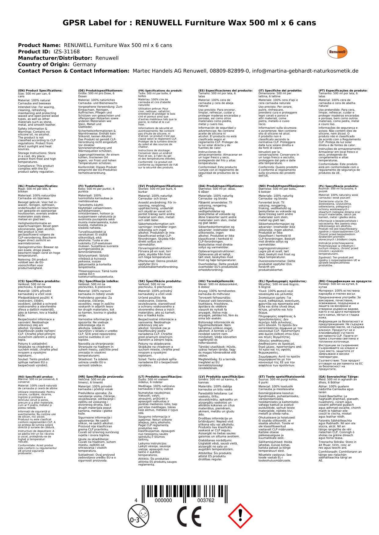 RENUWELL Möbel Wachs 500 ml x 6 Dosen