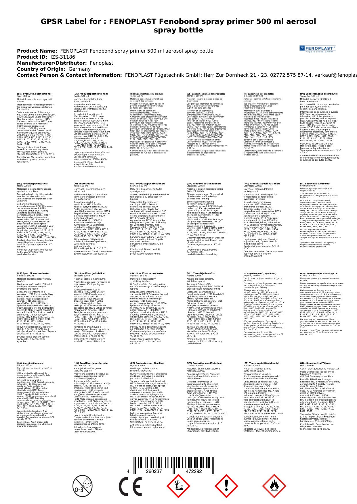 FENOBOND SPRÜHPRIMER ist ein lösemittelhaltiger Haftvermittler, welcher bei fast allen bauüblichen Untergründen, aber auch schwierigen Untergründen haftverstärkend wirkt und eine sichere und fachgerechte Verklebung ermöglicht.Der geruchsarme Primer wirkt selbstklebend mit schneller Anfangshaftung und eignet sich dadurch auch als Sprüh-Klebstoff.