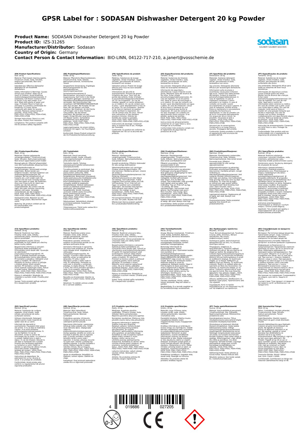 Stellen Sie eine Frage, um mehr über das Produkt zu erfahrenSODASAN Maschinenspülmittel 20 kg