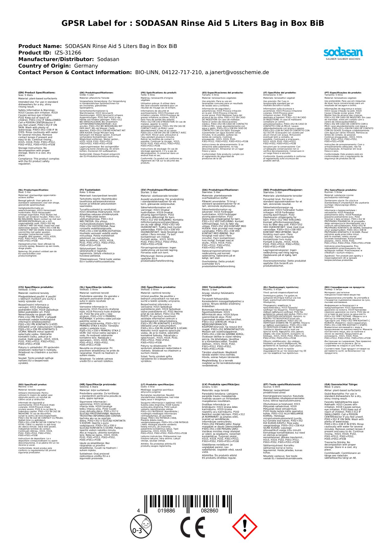 Stellen Sie eine Frage, um mehr über das Produkt zu erfahrenSODASAN Klarspüler 5 Liter Bag in Box (BiB)