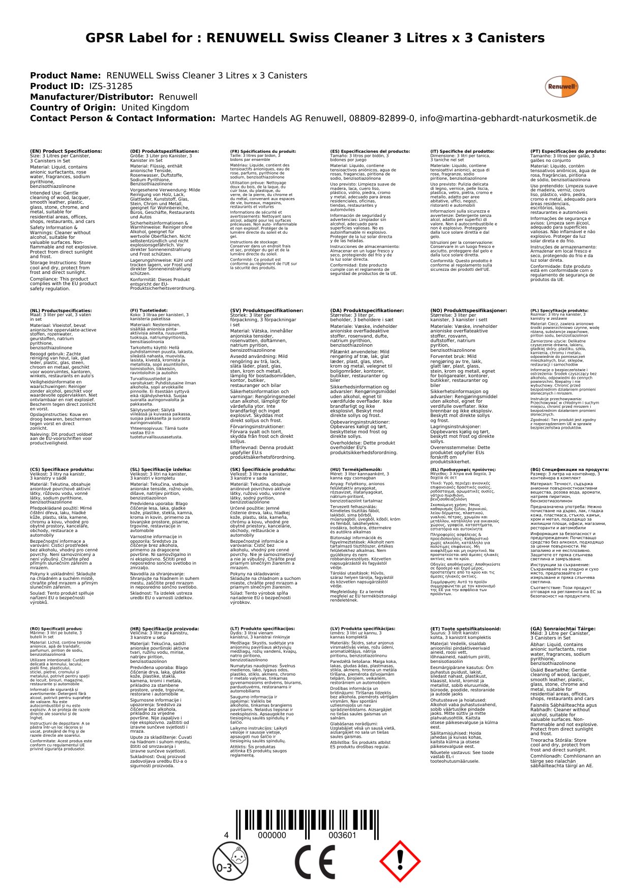 Stellen Sie eine Frage, um mehr über das Produkt zu erfahrenRENUWELL Swiss Reiniger 3 x 3 Liter SPARSET