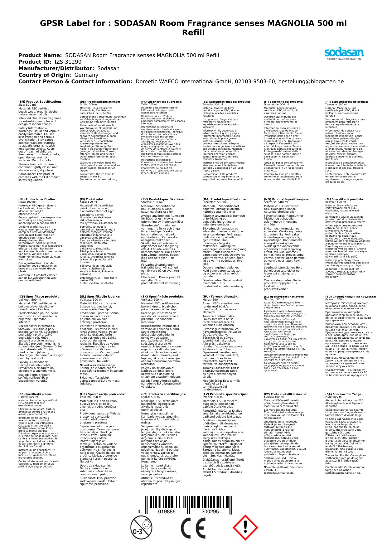 Kennzeichnungsauslösende Komponente: Ethanol 96%tig, ätherisches Öl