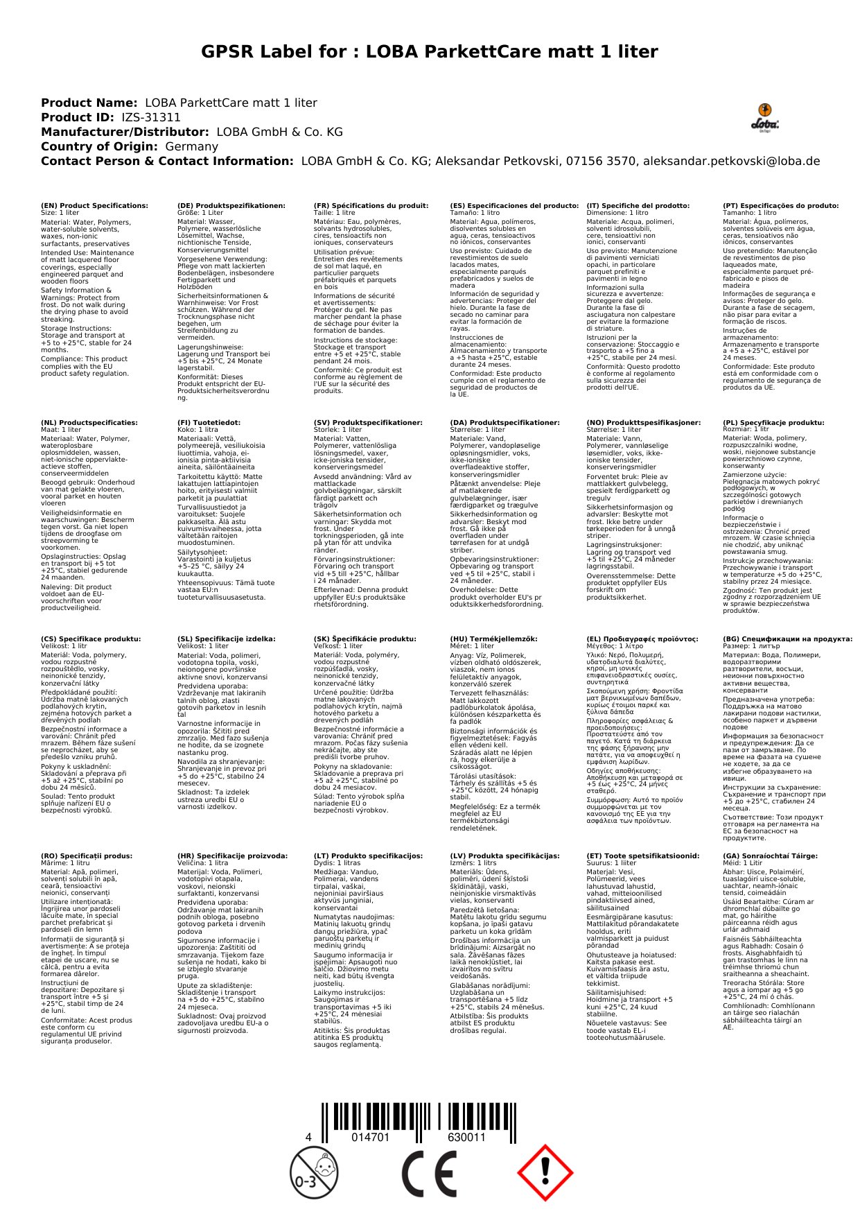 Loba ParkettCare ist ein wässriges Pflegemittel für nahezu alle Bodenbeläge, das matt lackierte Böden langfristig vor Verschleiß schützt. Es erhält den Boden in Optik und Wert und verleiht auch verschlissenen oder strapazierten Bodenoberflächen neuen Glanz. Loba ParkettCare eignet sich zur Pflege von jedem matt lackierten Fertigparkett und wird von den führenden Herstellern von Fertigparkett empfohlen. Das Produkt ist sicher in der Anwendung und besonders einfach zu verarbeiten.