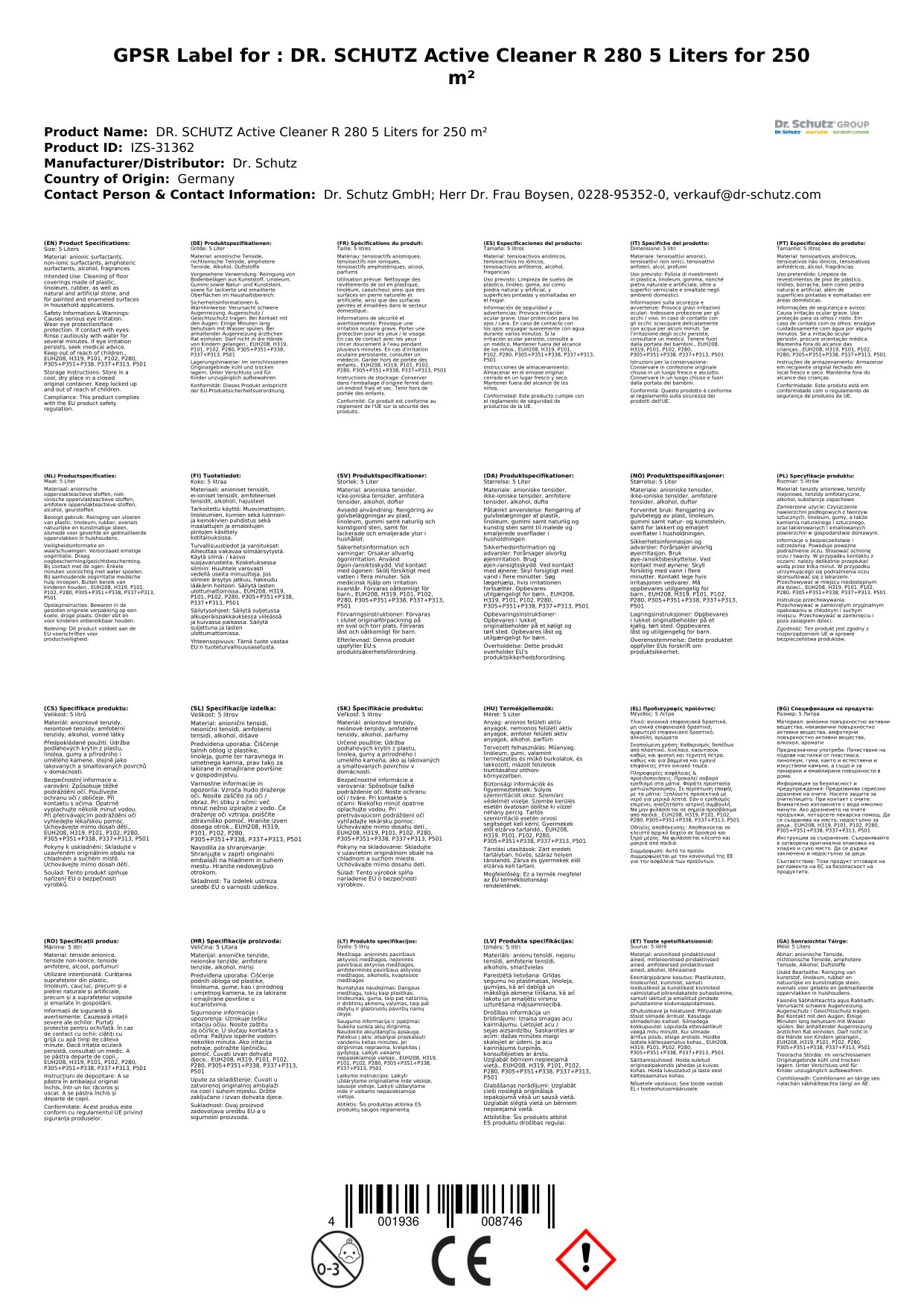 Stellen Sie eine Frage, um mehr über das Produkt zu erfahrenDr. Schutz Aktivreiniger R280 - 5 Liter
