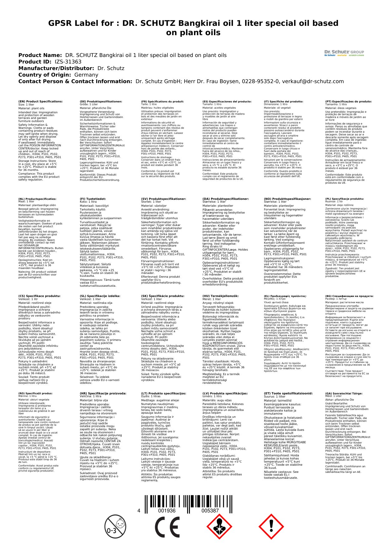 Stellen Sie eine Frage, um mehr über das Produkt zu erfahrenDr. Schutz Bangkirai-Öl 1 Liter Naturöl für Bangkirai-Hölzer im Außenbereich