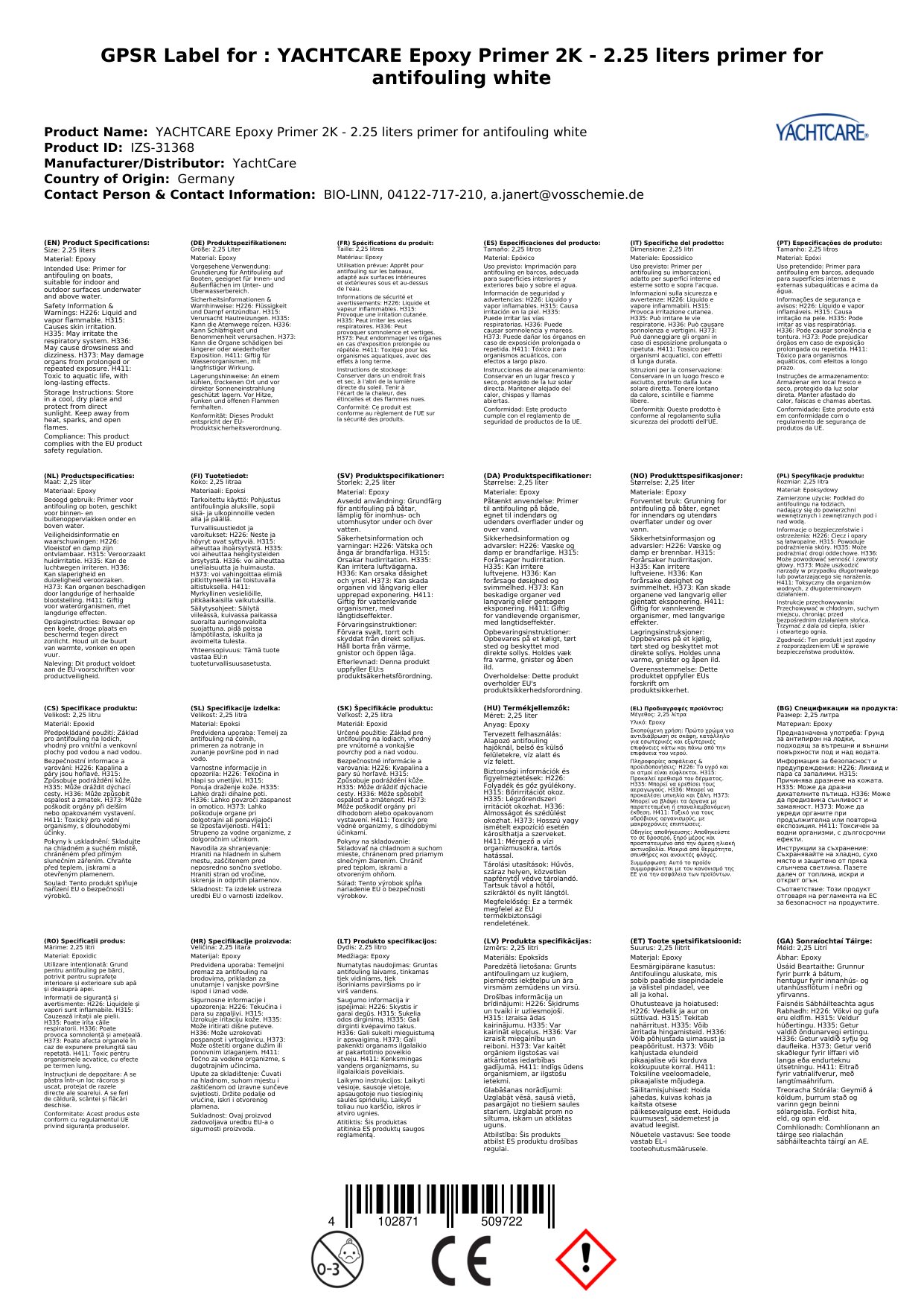 Stellen Sie eine Frage, um mehr über das Produkt zu erfahrenYachtcare Epoxy Primer 2K -2,25 Liter (Grundierung)