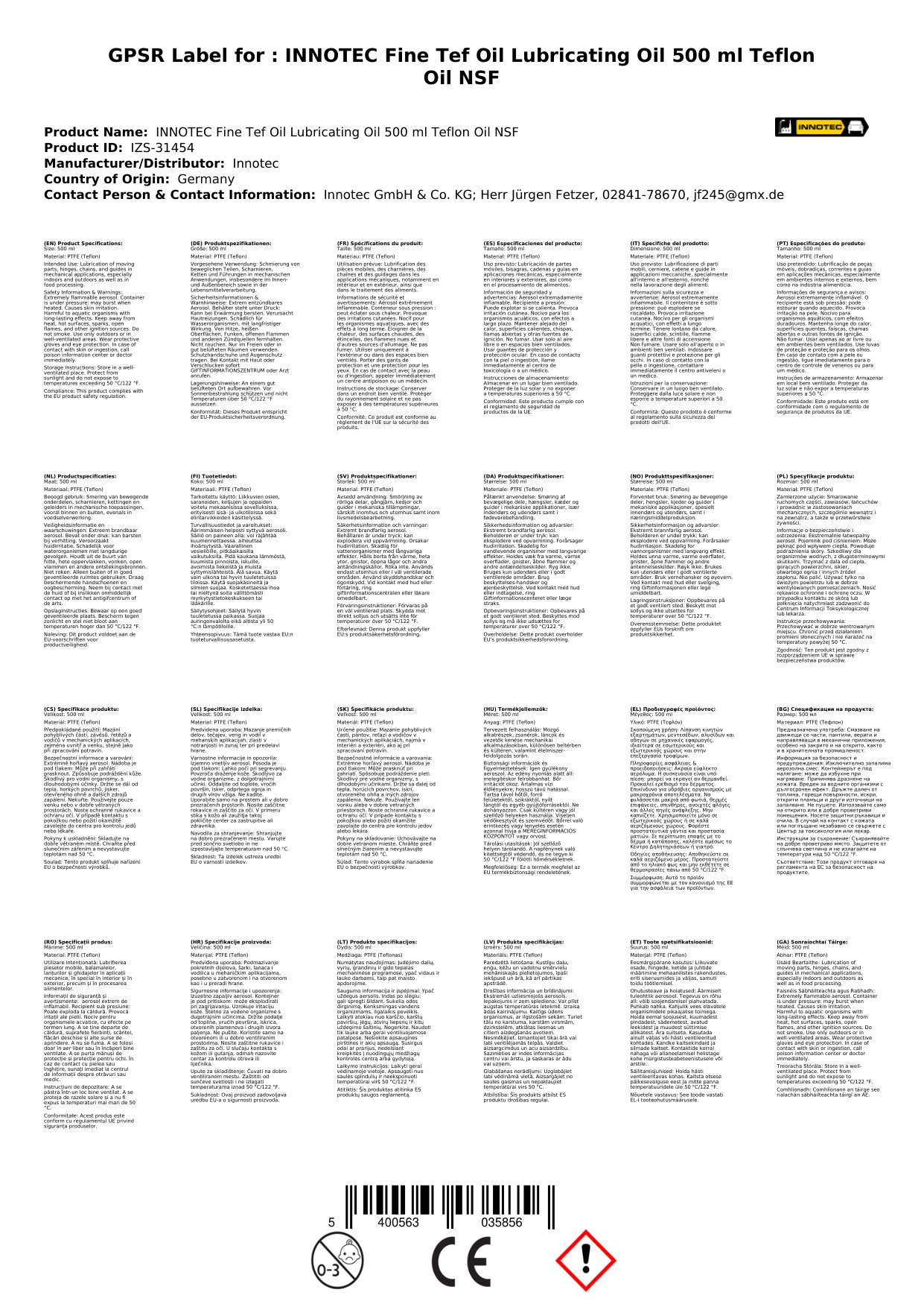 INNOTEC Fine Tef Oil Schmieröl 500 ml Teflonöl NSF