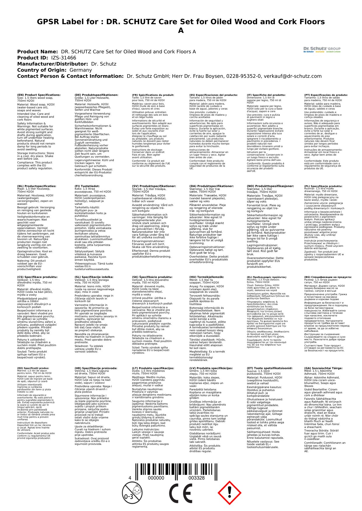 DR. SCHUTZ Pflegeset für geölte Holz- und Korkböden A