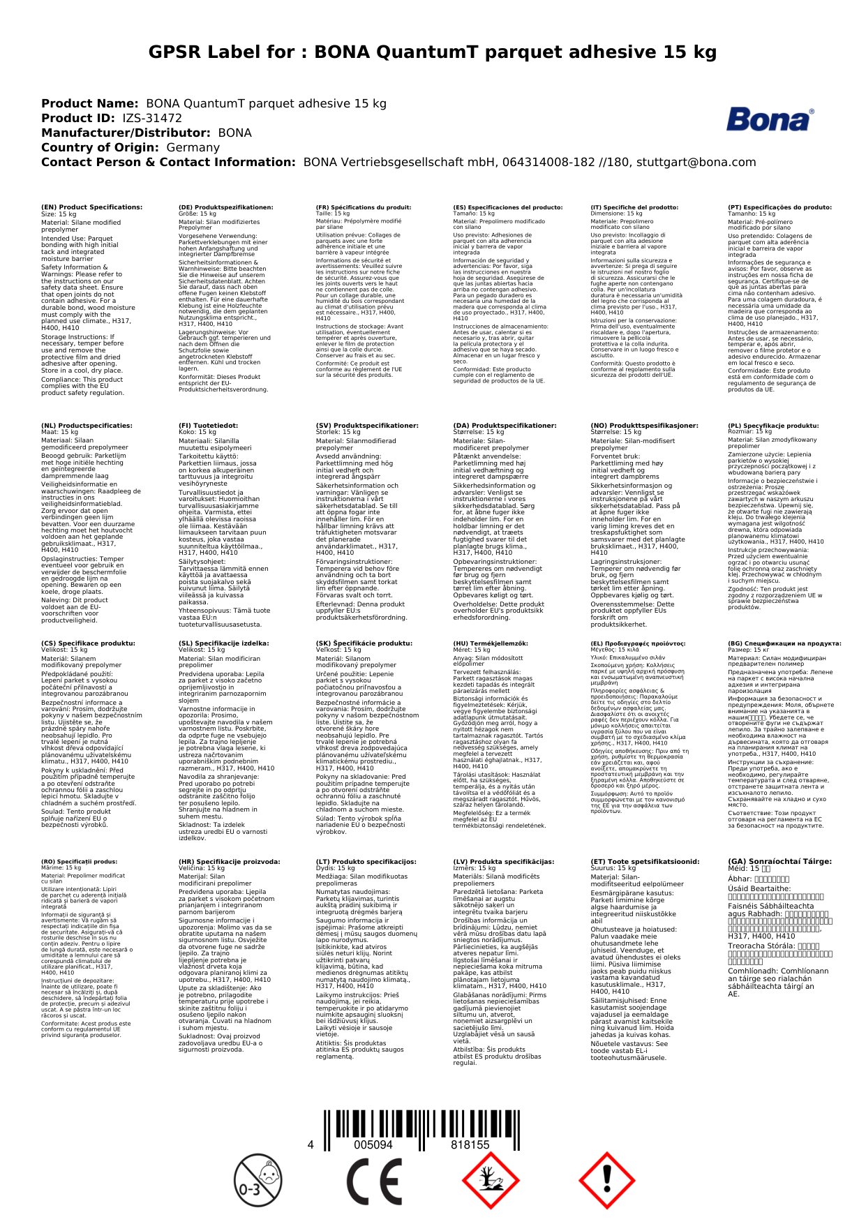 Bona Quantum / Bona Quantum T ist ein 1-komponentiger silan-basierter Parkettklebstoff für eine Vielzahl von Parkettverklebungen. Ausgestattet mit der revolutionären Titanium Crosslinking Technologie, zeigt der Klebstoff ein schnelles Abbinden mit einer sehr hohen Anfangshaftung. Die hart-elastische (nach ISO 17178) Einstellung mit verbesserter Scherfestigkeit garantiert ein perfektes Ergebnis über die Lebenszeit des Bodens. Bei Verwendung mit der Bona Trowel Plus bewirkt Bona Quantum / Bona Quantum T zusätzlich eine Dampfbremse zur Absperrung gegen kapillar aufsteigende Restfeuchtigkeit aus zementären Unterböden bis zu 5 CM% oder 95%** korrespondierende Luftfeuchtigkeit. Die einfache Handhabung der gute Riefenstand, sowie das geringe Emissionsprofil machen Bona Quantum / Bona Quantum T zu einem Premium Parkettklebstoff für die tägliche Anwendung.