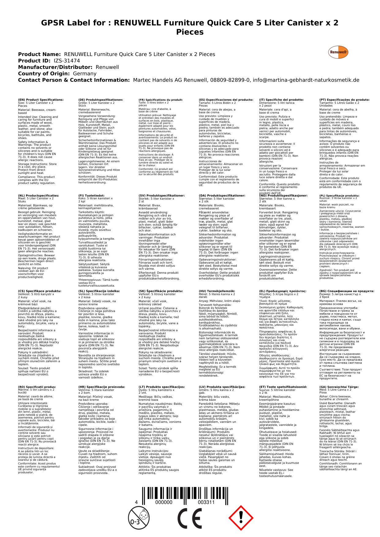 Stellen Sie eine Frage, um mehr über das Produkt zu erfahrenRENUWELL Möbel Schnellpflege mit Bienenwachs 2 x 5 Liter