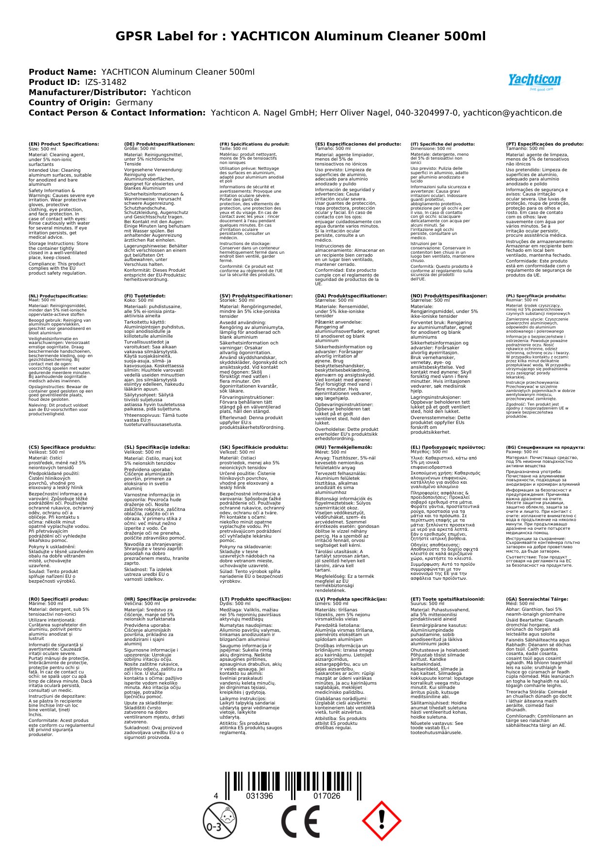 Stellen Sie eine Frage, um mehr über das Produkt zu erfahrenYachticon Aluminium Reiniger 500 ml