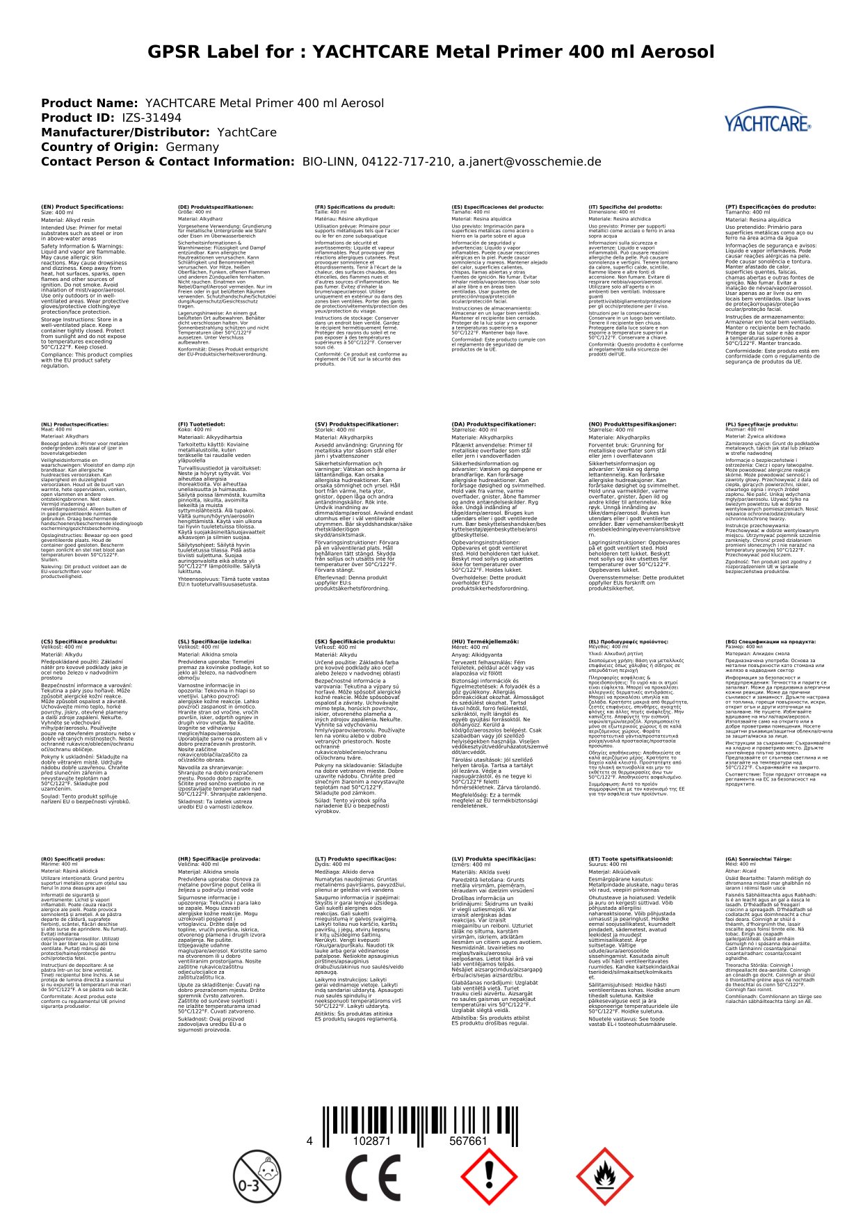 YACHTCARE Metallgrundierung 400 ml Aerosol