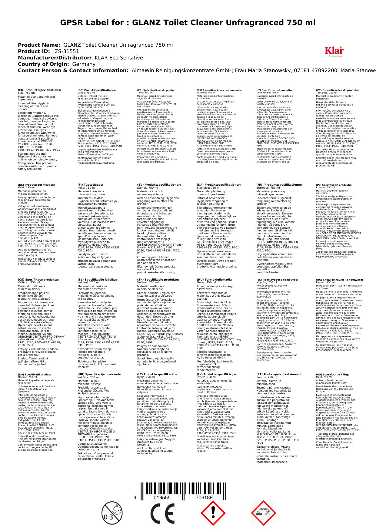 P305 + P351 + P338 BEI KONTAKT MIT DEN AUGEN: Einige Minuten lang behutsam mit Wasser spülen.