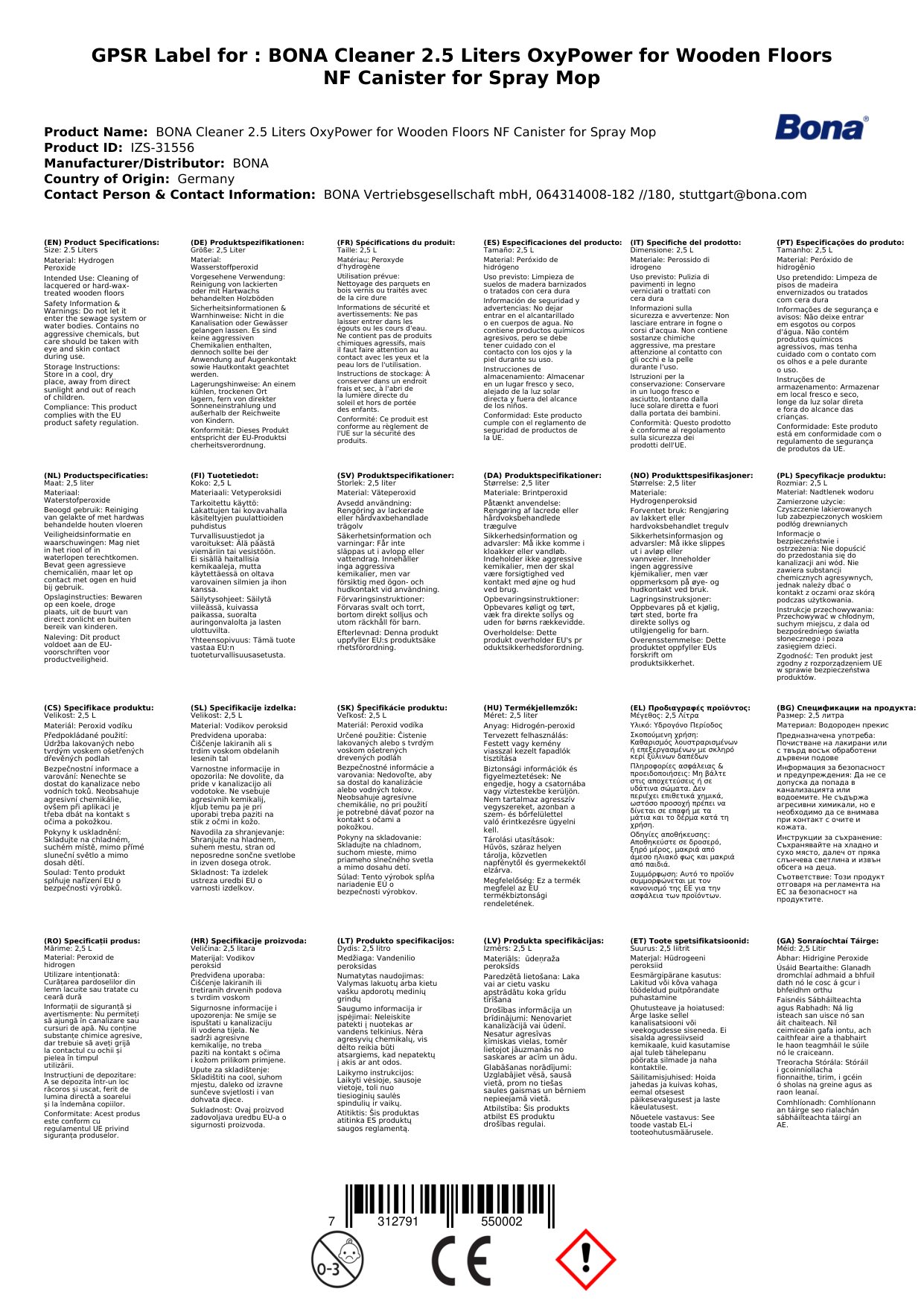 | Brand | BONA |