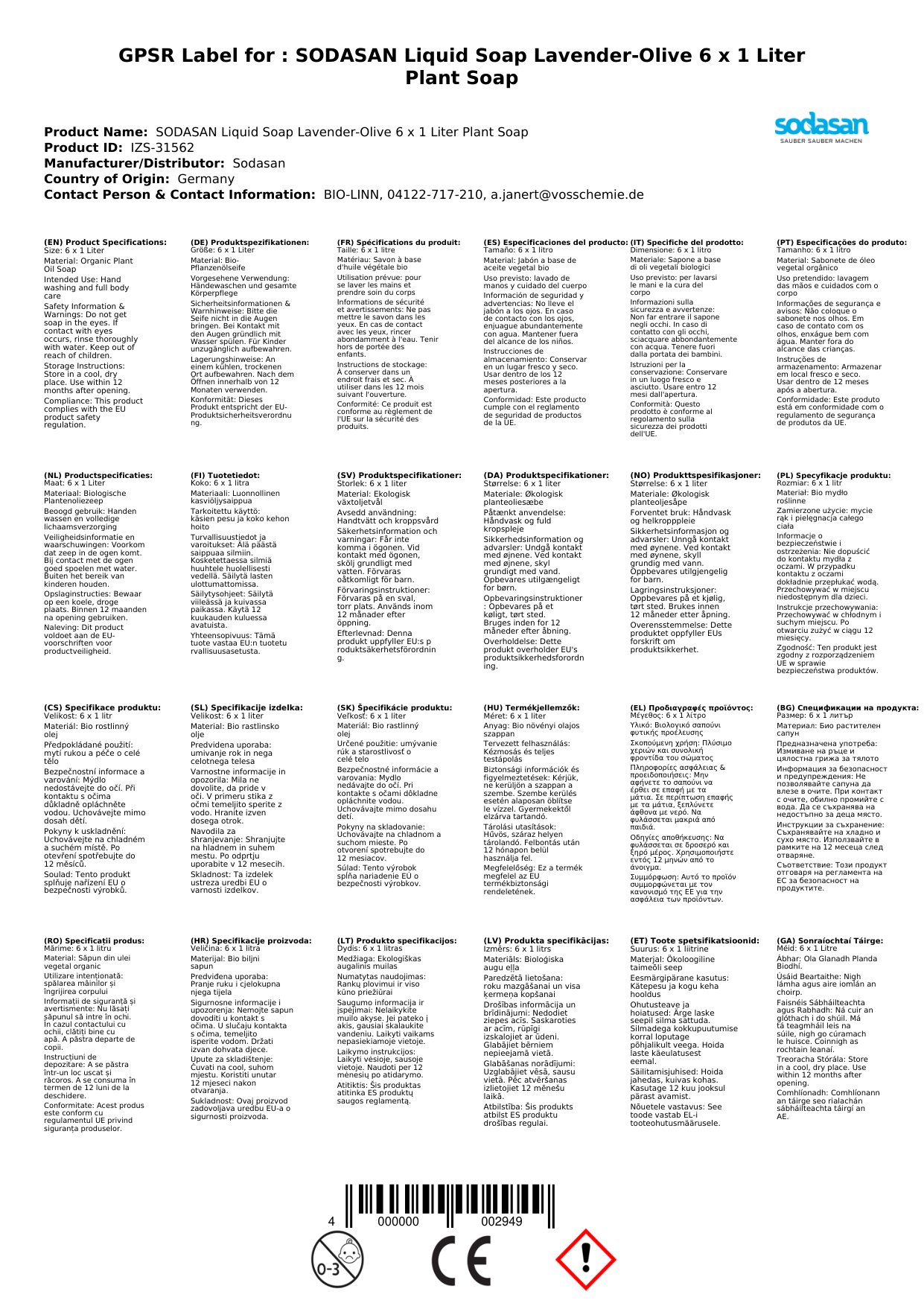 SODASAN Flüssigseife Liquid Lavendel-Olive 6 x 1 Liter Pflanzenseife