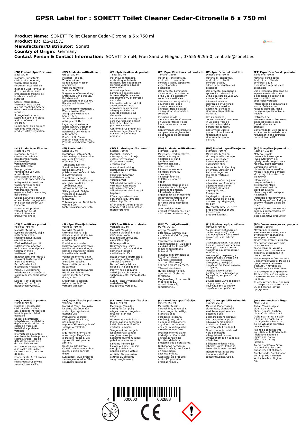 Stellen Sie eine Frage, um mehr über das Produkt zu erfahrenSONETT WC Reiniger 6 x 750 ml Zeder Citronella