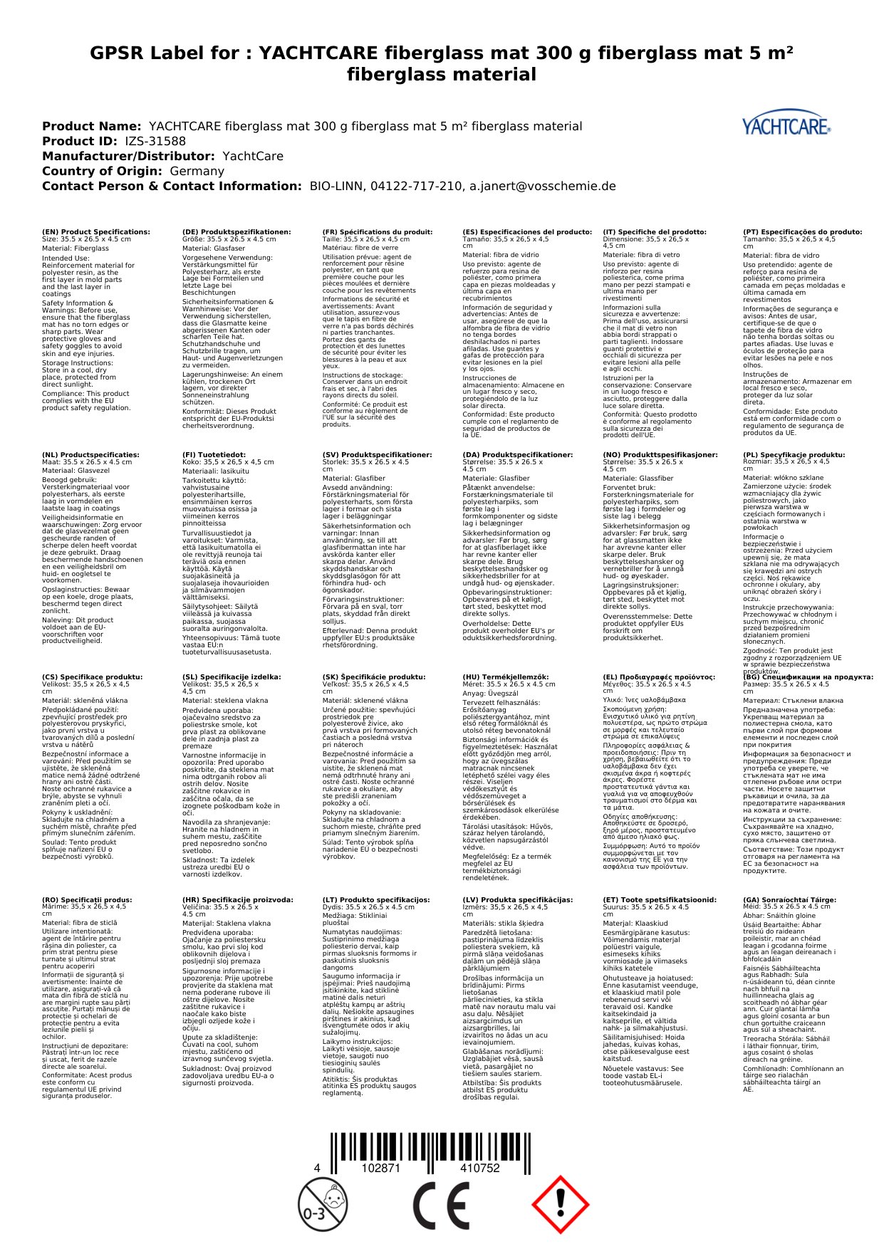 Stellen Sie eine Frage, um mehr über das Produkt zu erfahrenYachtcare Fiberglas Mat 300g Glasmatte (5 m² Inhalt) Glasfasermatte