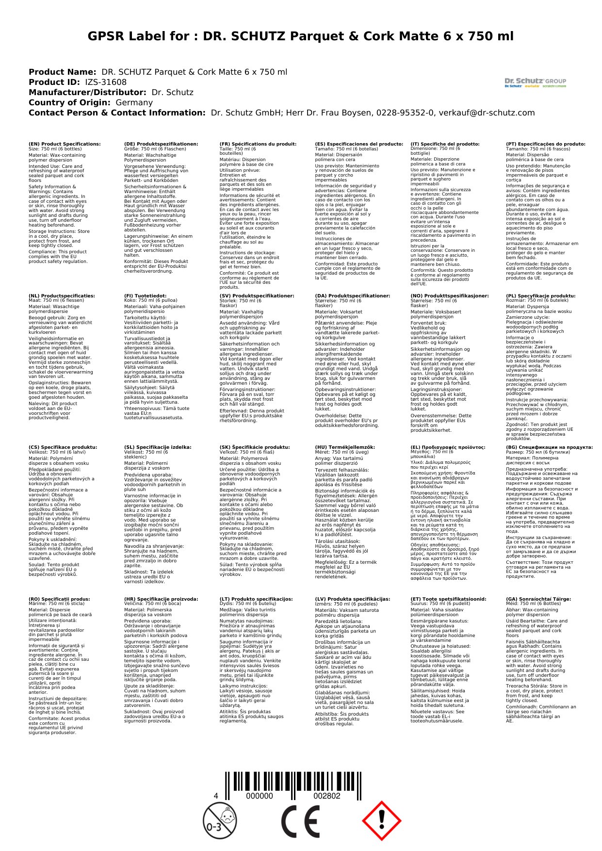 DR. SCHUTZ Parkett & Kork Matt 6 x 750 ml