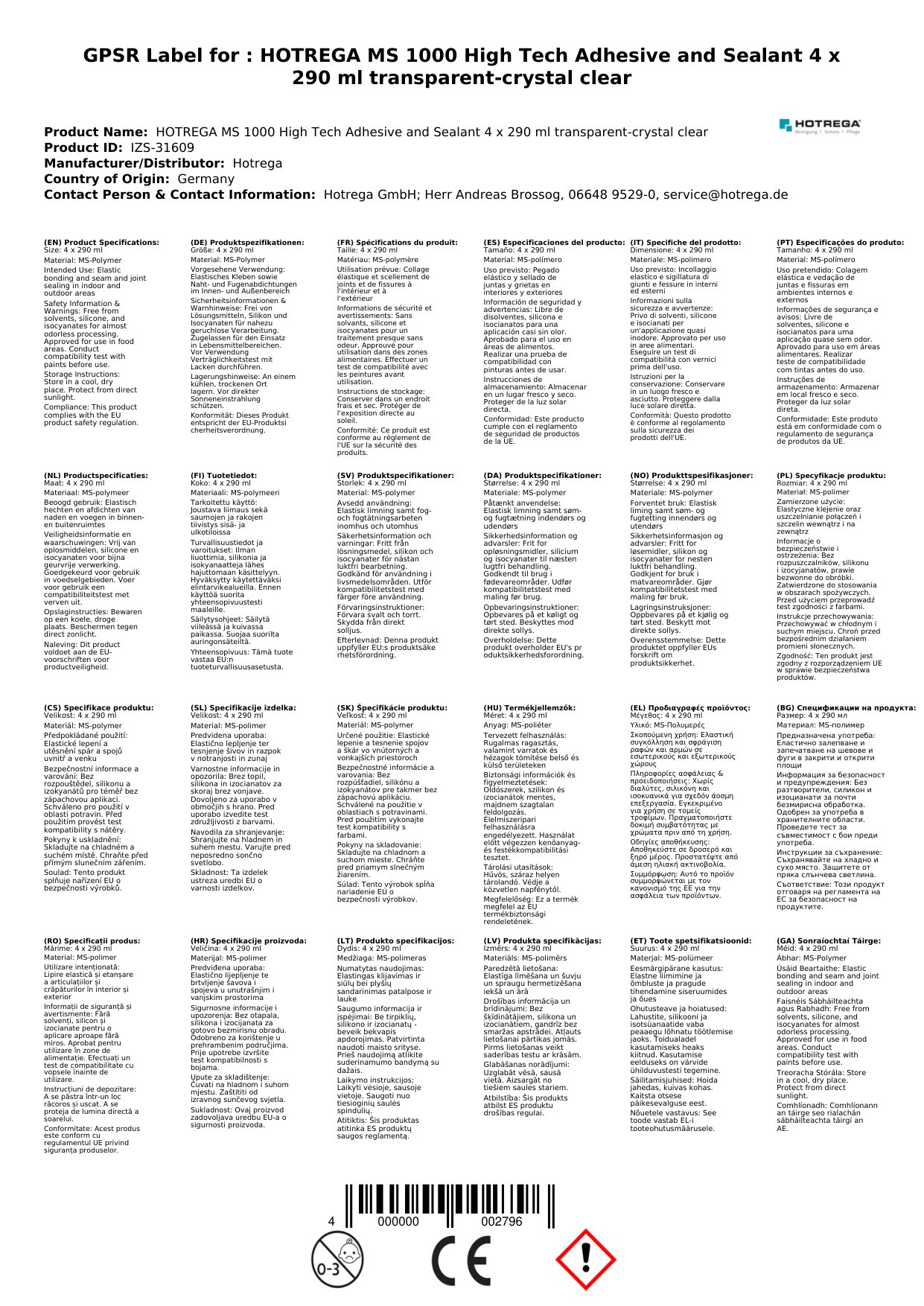 HOTREGA MS 1000 High Tech Kleb- und Dichtstoff 4 x 290 ml transparent-kristallklar