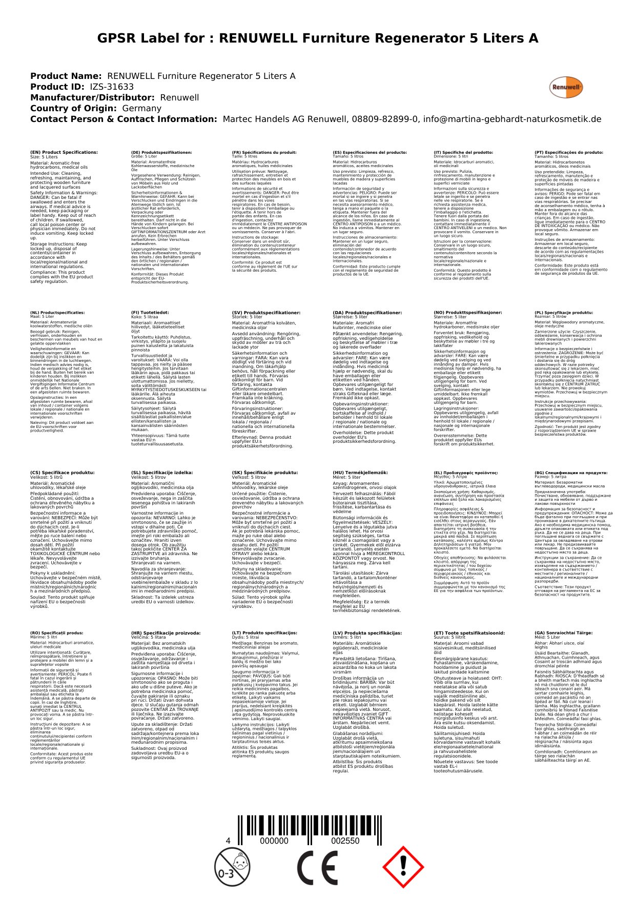 Stellen Sie eine Frage, um mehr über das Produkt zu erfahrenRENUWELL Möbel Regenerator 5 Liter