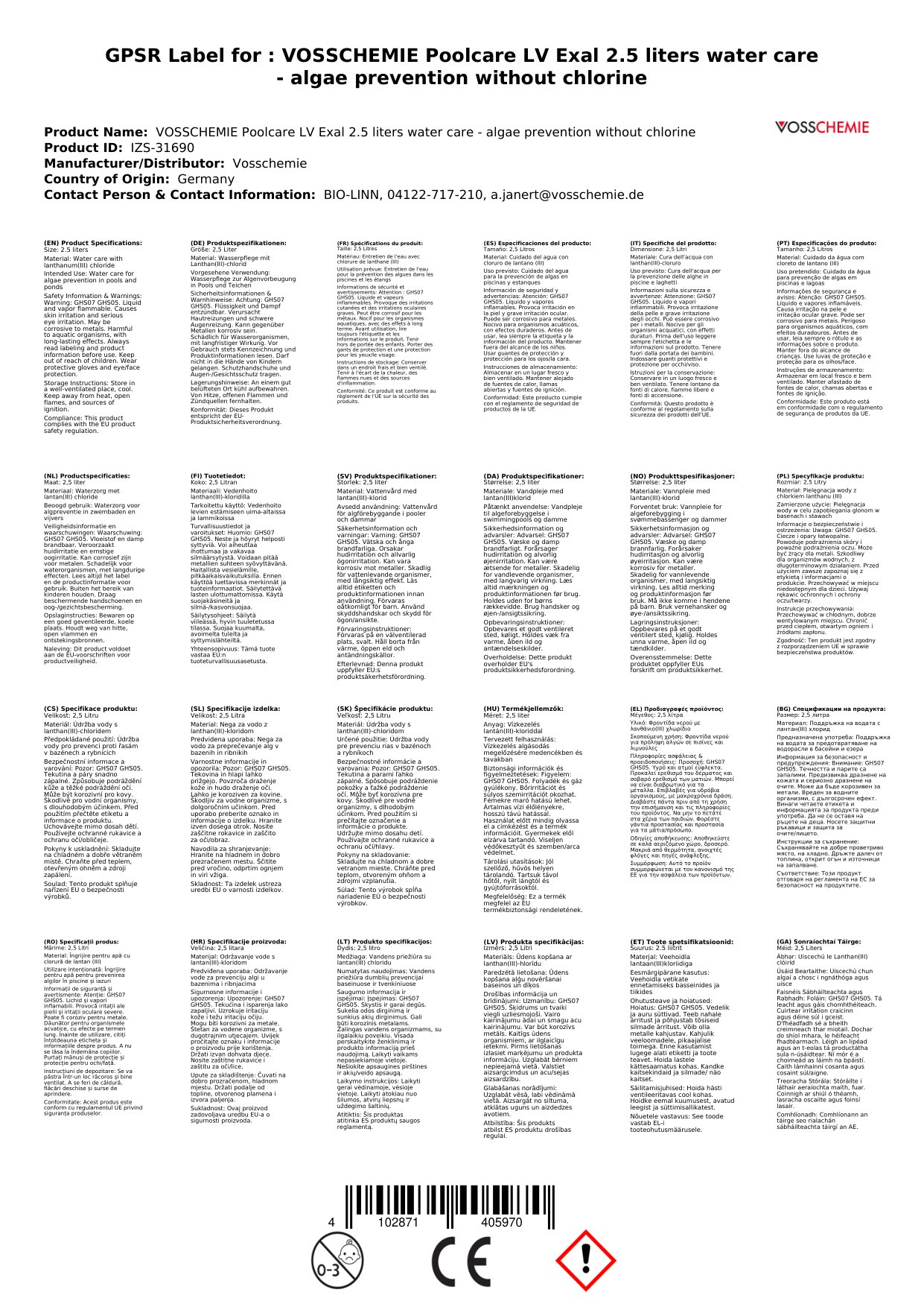 Stellen Sie eine Frage, um mehr über das Produkt zu erfahrenVosschemie Poolcare LV Exal 2,5 Liter Wasserpflege Algenvorbeugung Überwinterung ohne Chlor