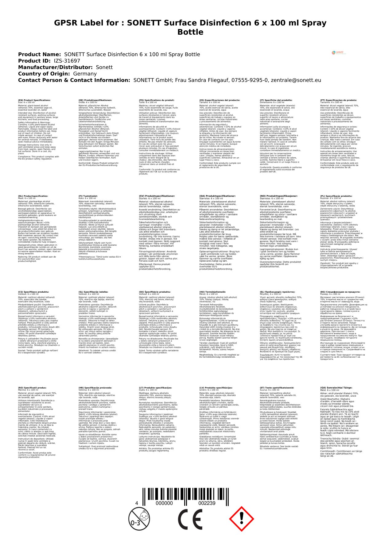 SONETT Flächendesinfektion 6 x 100 ml Zerstäuberflasche DVG gelistet