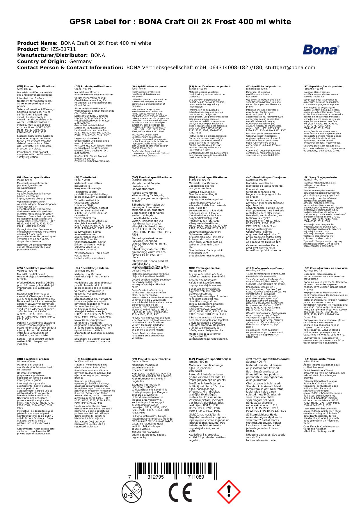 Stellen Sie eine Frage, um mehr über das Produkt zu erfahrenBona Craft Oil 2K Frost 400 ml (weiß)