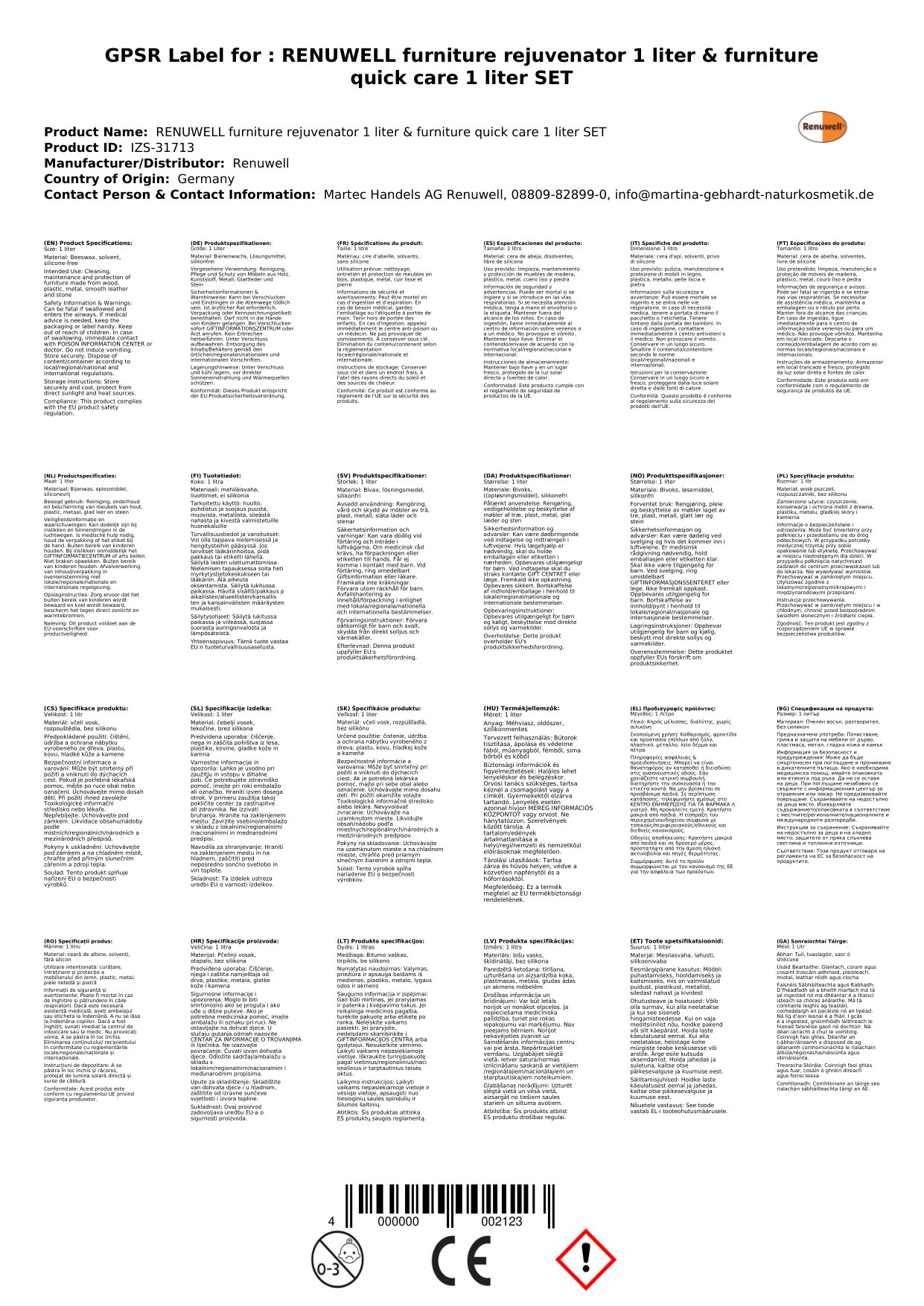 Stellen Sie eine Frage, um mehr über das Produkt zu erfahrenRENUWELL Möbel Regenerator 1 Liter & Möbel Schnellpflege 1 Liter