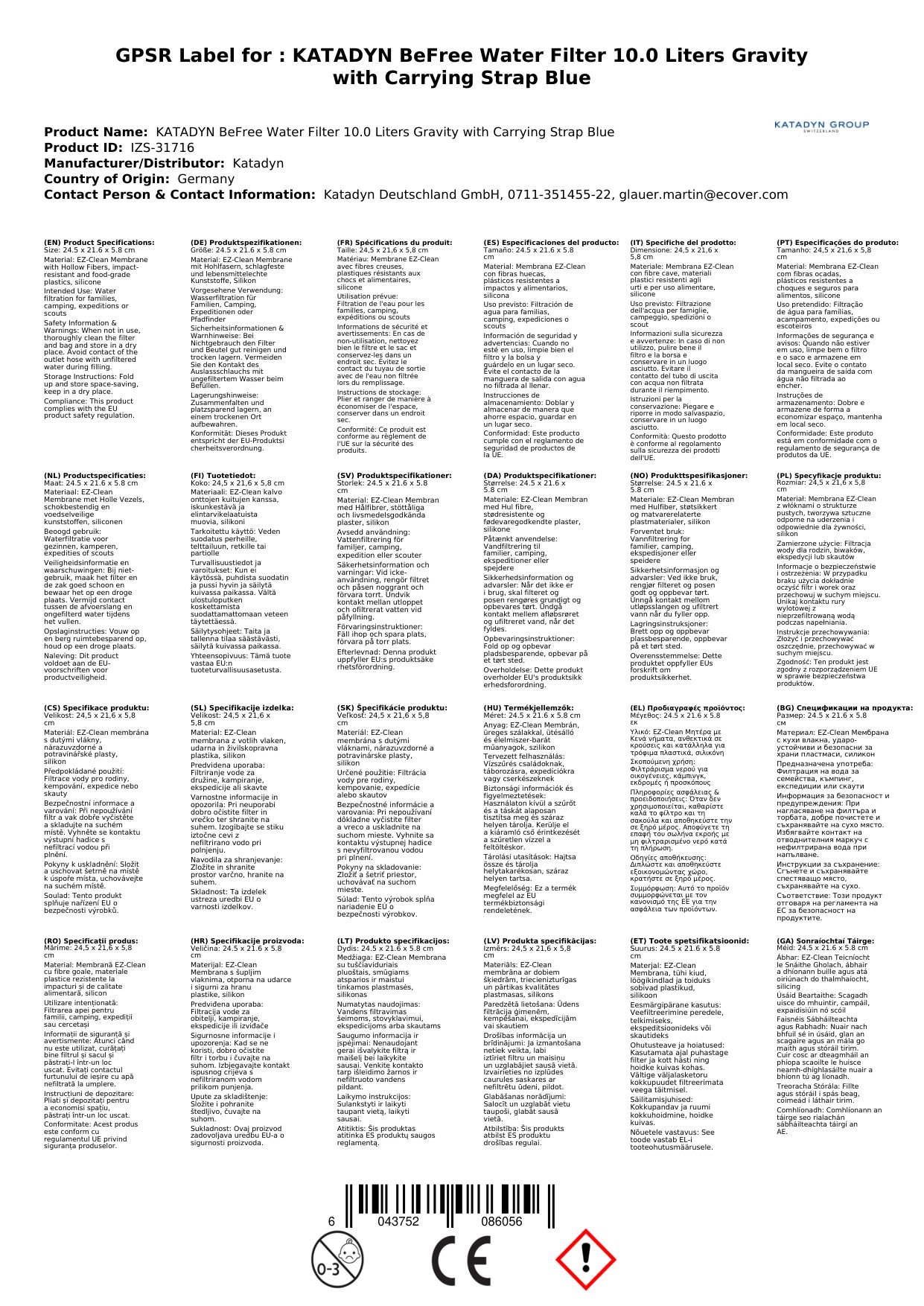 KATADYN BeFree Wasserfilter 10.0 Liter Gravity mit Trägergurt blau