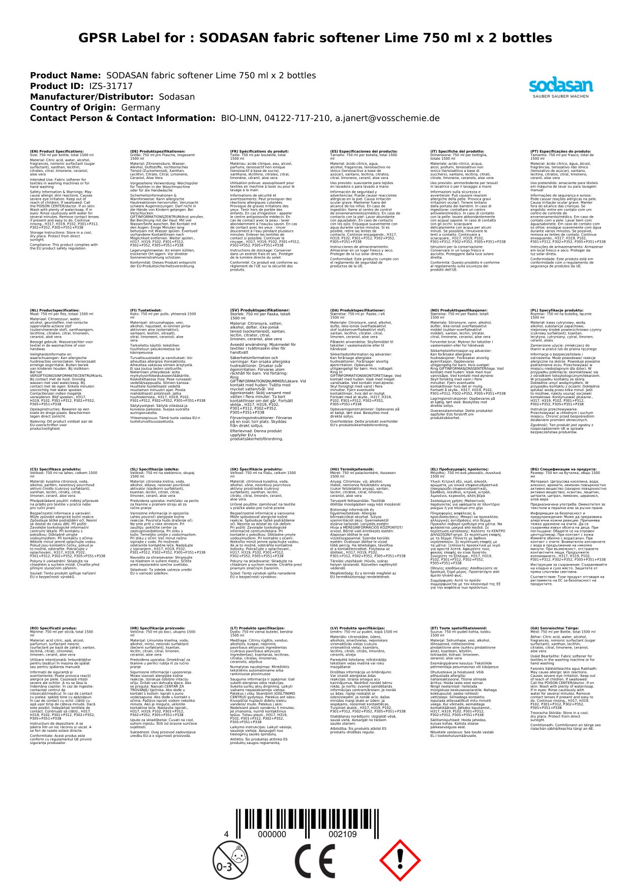 Stellen Sie eine Frage, um mehr über das Produkt zu erfahrenSodasan Öko Weichspüler Limette 2 x 750 ml