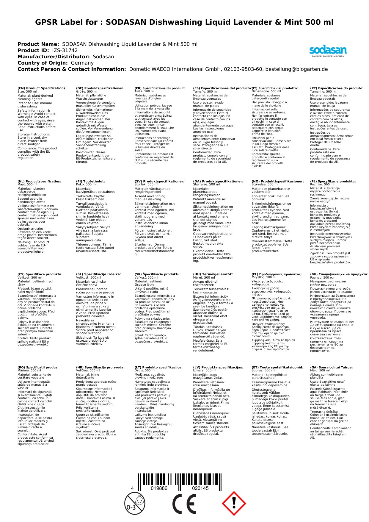 SODASAN Spülmittel Lavendel & Minze 500 ml