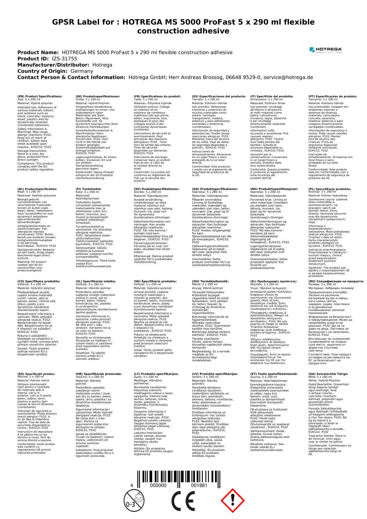 HOTREGA MS 5000 ProFast 5 x 290 ml flexibler Konstruktionskleber / Montagekleber